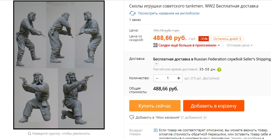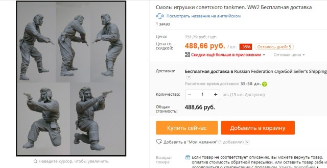 Я друзья заказываю только фигурки, так как они весьма достойного качества, а вот цена на модели, непомерно высока, проще купить на том же: Я-моделист, Центр Хобби или Русский Масштаб!