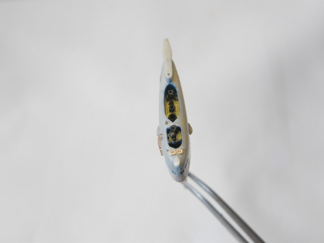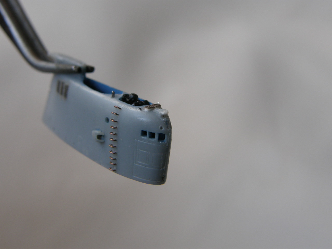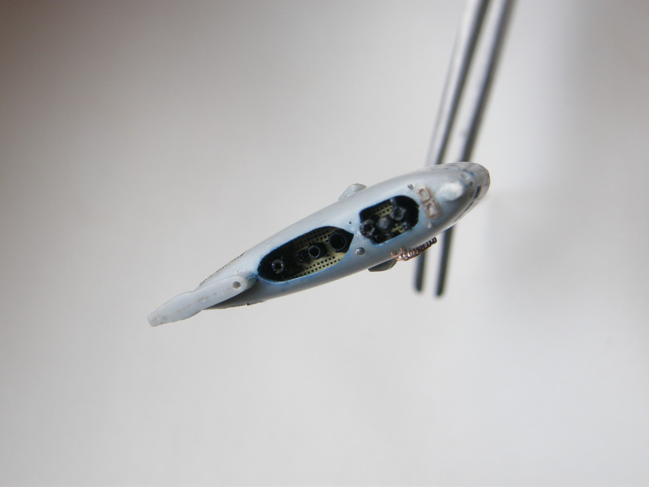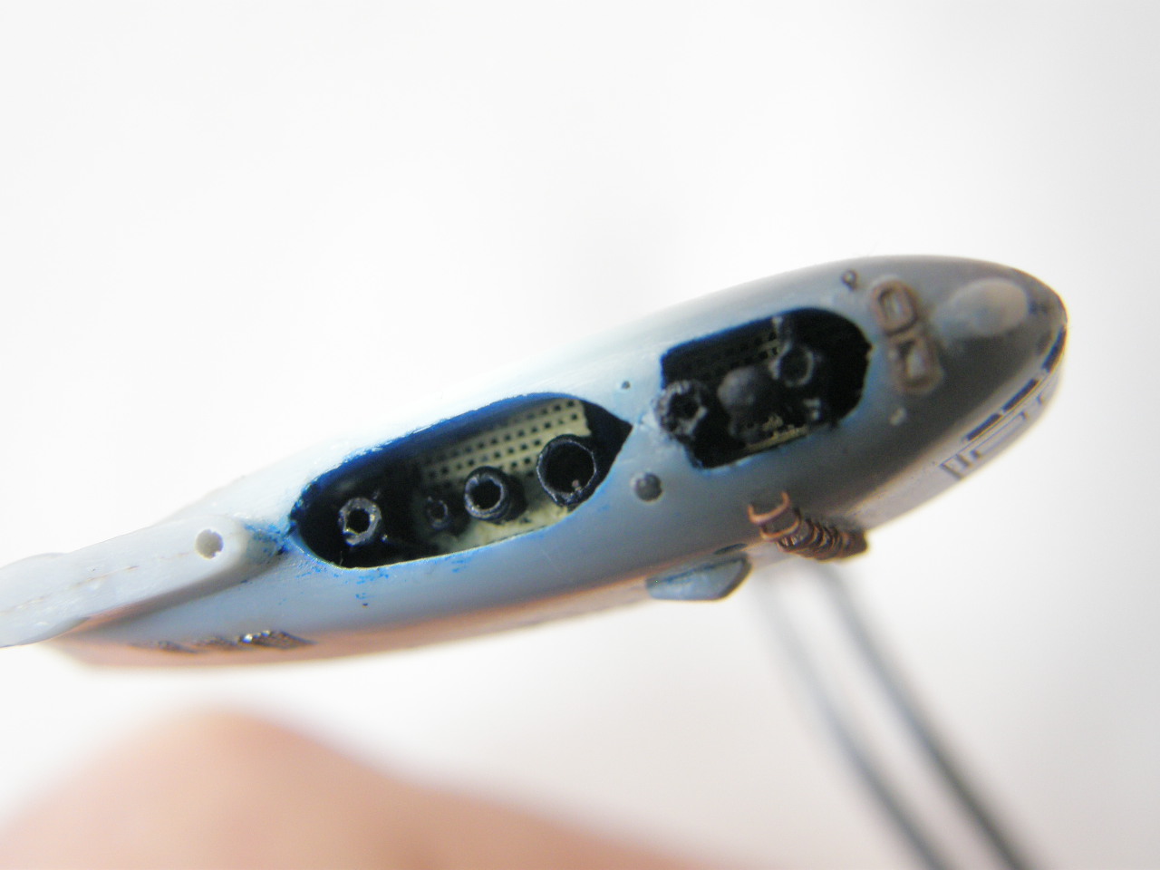 Из стоек лееров от Тамии изготовил два рыма для крепления растяжек штока торпедопогрузочного устройства (ТПУ) и также закрепил цапонлаком на штатных местах.