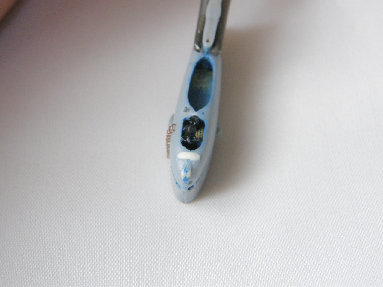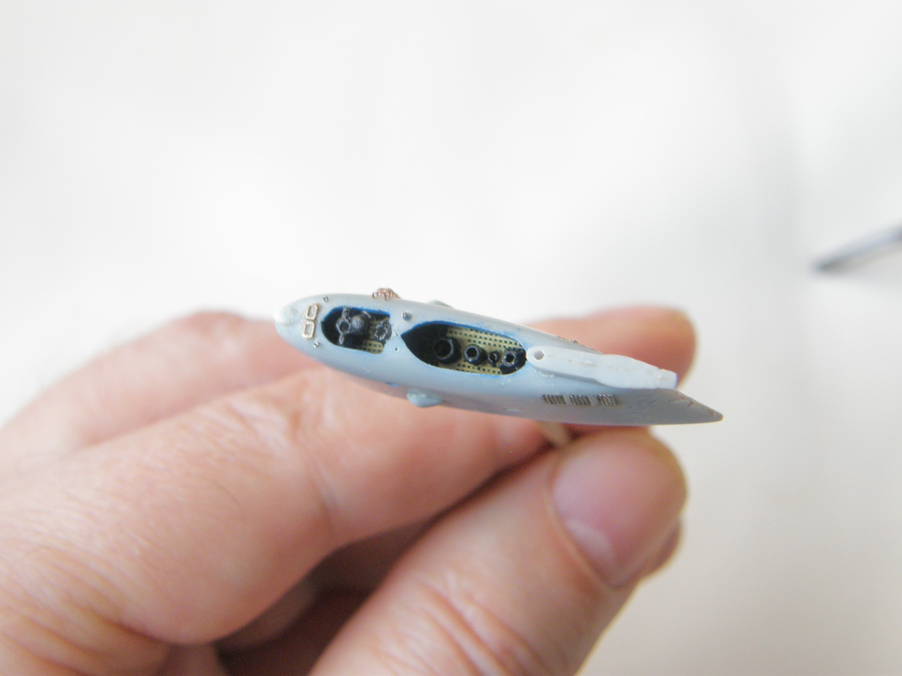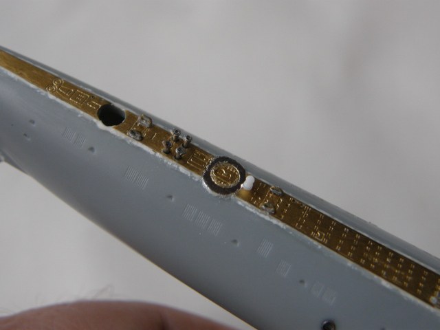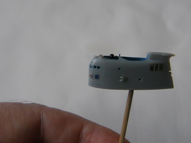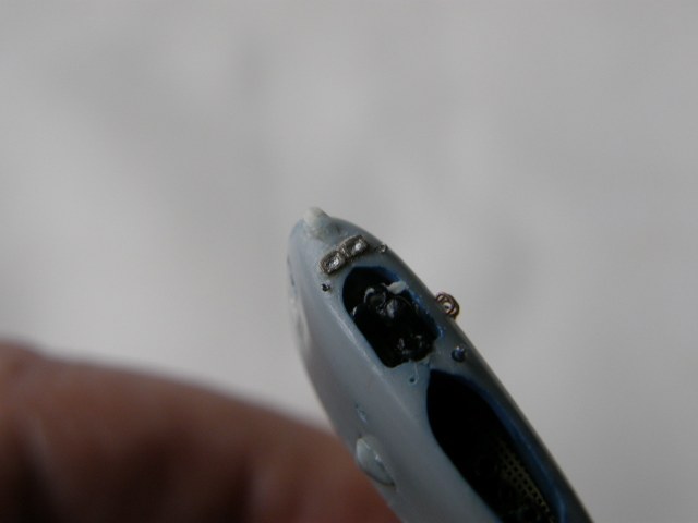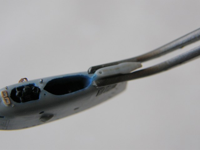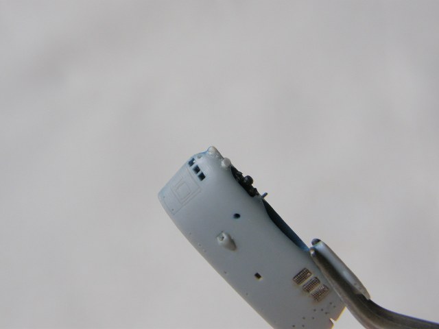 И в самом конце модельным ножом аккуратно вырезал углубление под плафон топового огня в обтекателе (выгородке) топового огня.