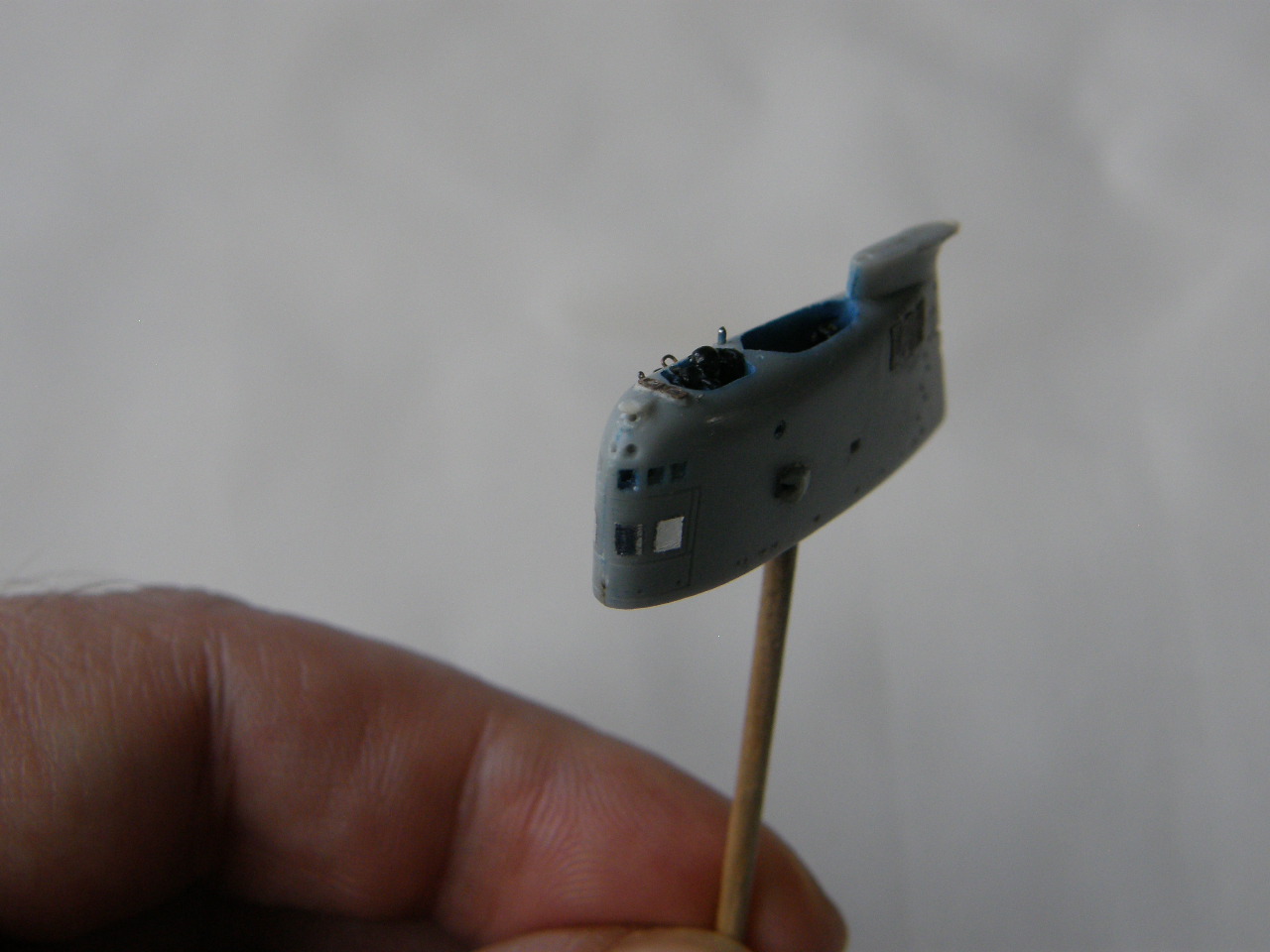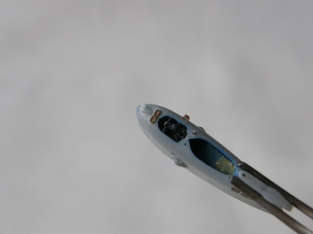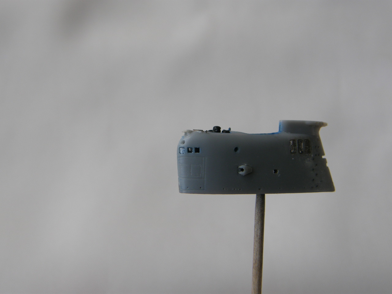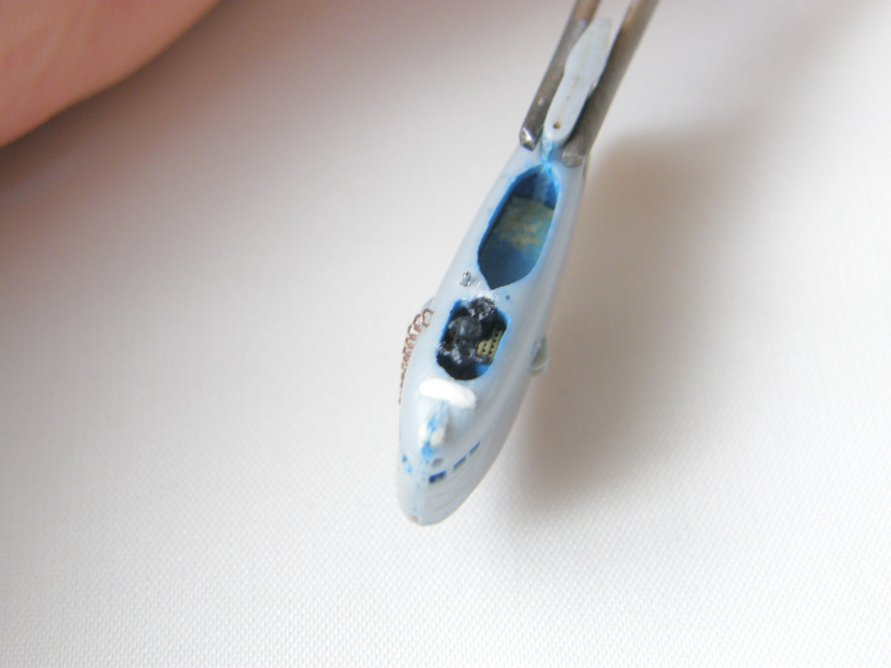 И в самом конце модельным ножом аккуратно вырезал углубление под плафон топового огня в обтекателе (выгородке) топового огня.