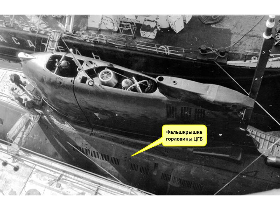 Вторая лампочка изобразила отсвет от подсветки шкал приборов (репитер гирокомпаса, указатель положения вертикального руля, ВИКО) на БП-06 (пост управления вертикальным рулем) через носовые иллюминаторы ОР.