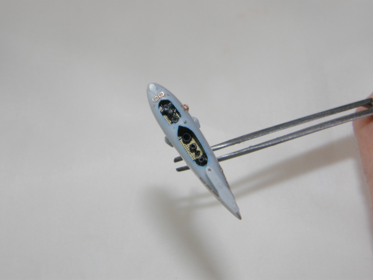 Затем, сверлом Ø0,35мм сделал вертикальное отверстие под шток торпедопогрузочного устройства между отверстиями под тифон и сирену.