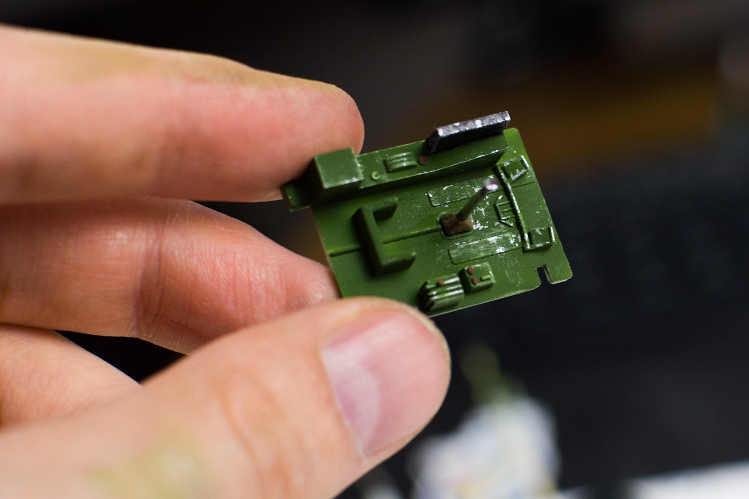Если вдруг у кого есть опыт работы с такими, буду рад любым советам и хитростям. Краску пожиже, каплю черного в нее и регулятор закрутить. 2-Задуть модель сначала черным глянцевым, потом на него тамиевский аллюминий из квадратной банки (из круглой слишком зернистый), потом лак (но это не точно), и далее уже красить в цвет, а после смочить его водой и содрать зубочисткой. Зеро все облупленные какие-то а кисточкой я их лупить замучаюсь. Да, использую все тамиевское, есть немного акана и мастер-акрила от звезды, другого в нашем городе просто не найти, а заказывать еще холодновато. Не умею аттачить несколько картинок в текст верно, в предпросмотре вакханалия выходит, уж извините)