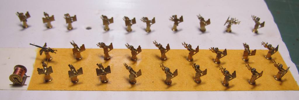 Да. Ниточки на фото из предыдущего поста - это заготовки на мачту пойдут. Потом поставить рымы было-бы напряженно, а уж вдеть туда нить вообще фантастика. Поэтому заготовил заранее. Сначала вдел-вклеил нить, потом рымы вклеил.