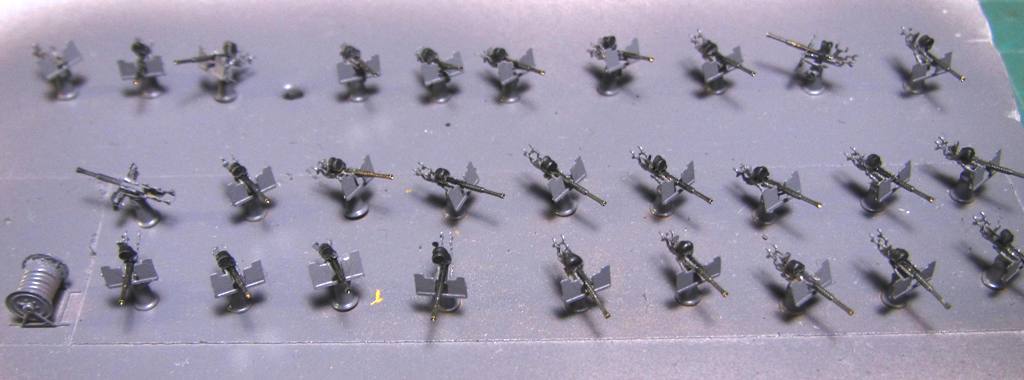 Пока был в деревне потихоньку гнул пулеметы. Пара ушла в мусор, пока тренировался. Благо противовоздушного вооружения на 1942г надо меньше чем на 1943г. Диск-патронташ имитируется двумя элементами, (которые при загибании легко отламываются) заполнил в два-три приема клеем ПВА для придания объема.