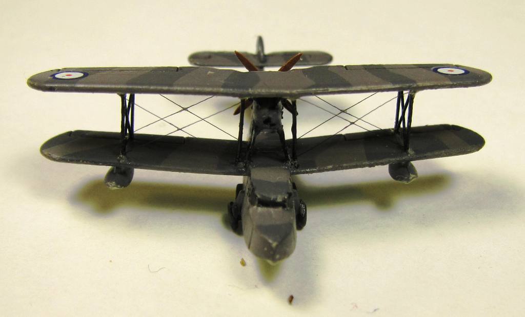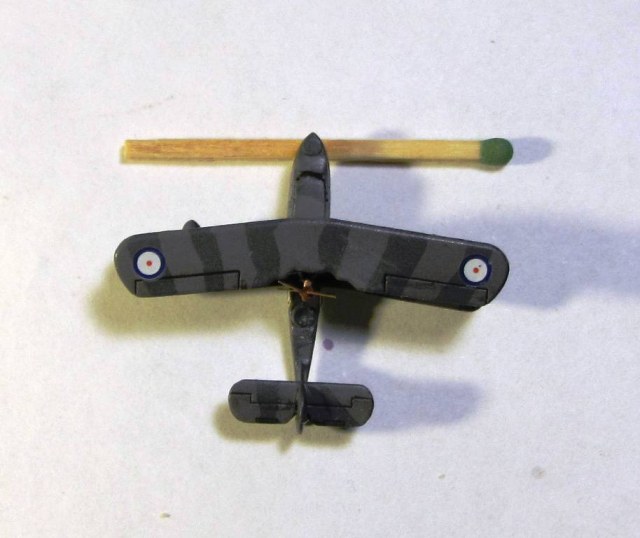 Собрал самолетик. Покрасил по данным из интернета (Sky type S, Dark slate grey/extra dark sea grey,  light slate grey/dark sea grey). Если хобби колор с цветом не обманывает, то такая раскраска и должна быть (у Колина полосы зеленоватые). Распорки из набора Понтос, расчалки сделал из нити от бантика. Вот не знаю будет ли их потом, уже в коробе, видно?
