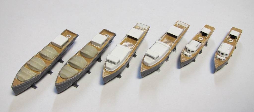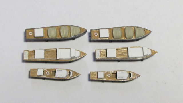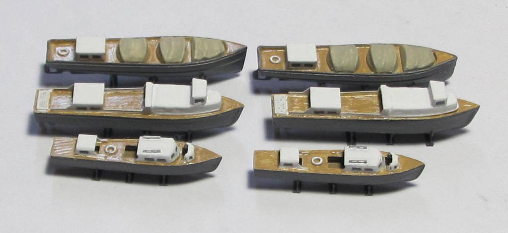 Покрасил катера. "Застеклил" иллюминаторы. Осталось вклеить винты, их диаметр около 1,5 мм и выгнуть лопасти думаю не получится (каждая лопасть примерно 0,5 мм).