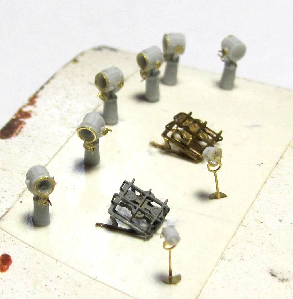 Которые покрупней (на фото) да 24ки. Мелкие - даже не знаю (USN searchlinght  NSA 350079), но лучше чем в пластике. Пластиковые.... не догадаешься что это должно обозначать прожектор. Как то я не сообразил, надо было покрасить и сверху краски маховики, А то даже на еще более крупных (уже установленных) прожекторах их не разглядишь.