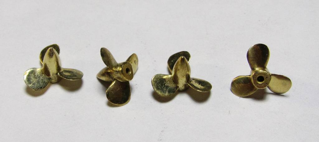 Латунные винты. Обточил толщину и придал, по возможности, более правильную форму лопастей. Пока в одном пакетике бултыхались успели поцарапаться. Заметил только сейчас на фото. Придется еще полировать.