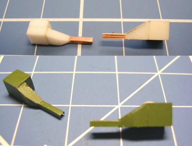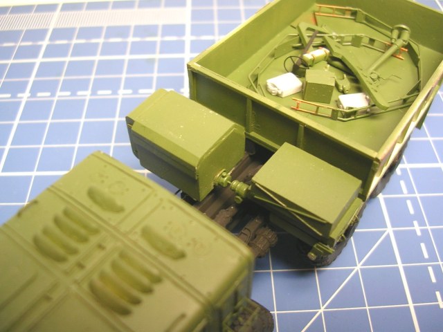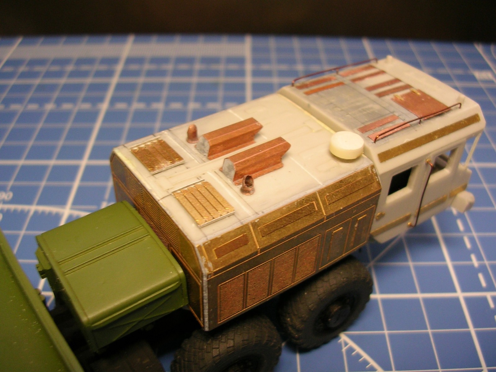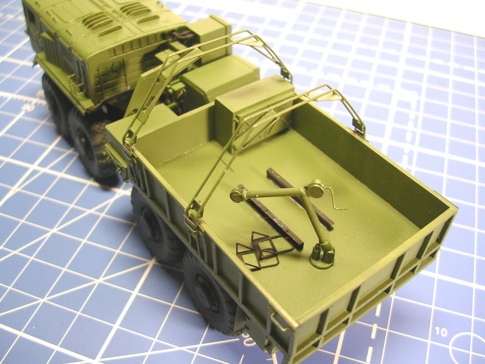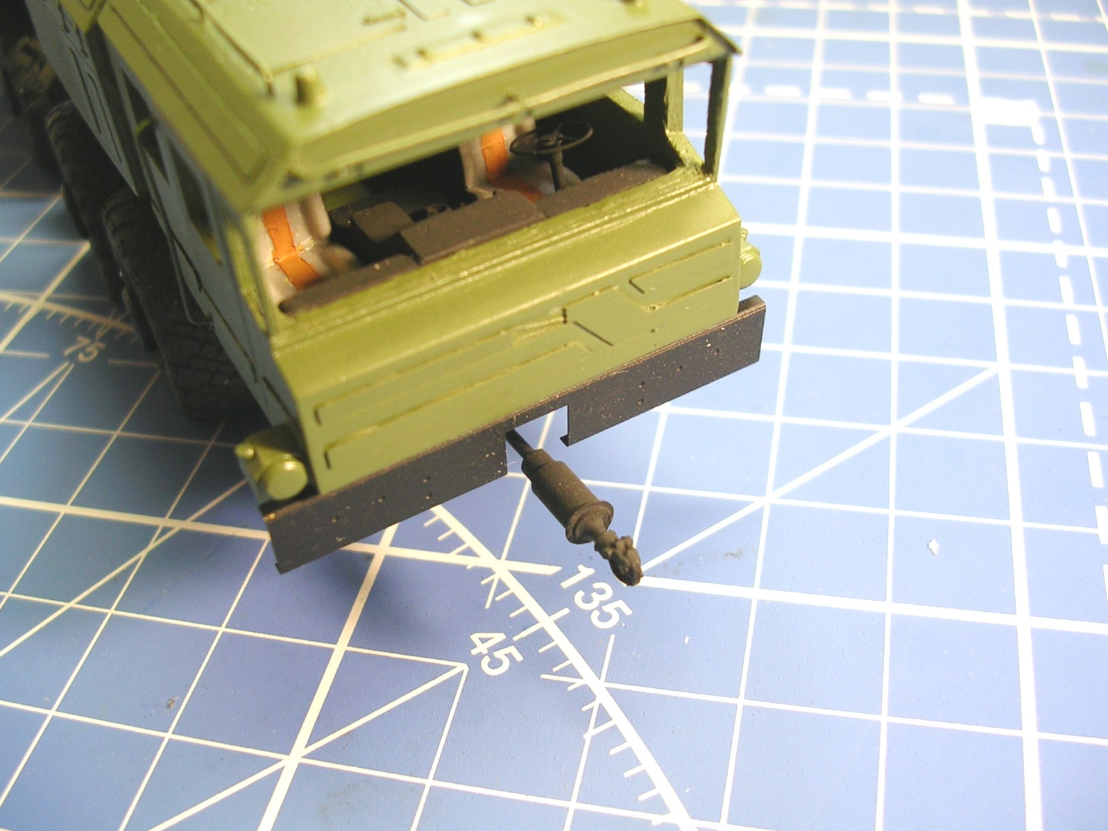 В моих наборах Armada дала и для МАЗ и для КЗКТ одинаковые выхлопные трубы (по образцу МАЗ), да ещё и по одной для обоих моделей... а между тем они разные и к тому же парные... КЗКТ "отдал свой "полнабор" МАЗу... Я же рассверлил некопийные "пеньки" труб и вклеил как мне кажется "реальные".