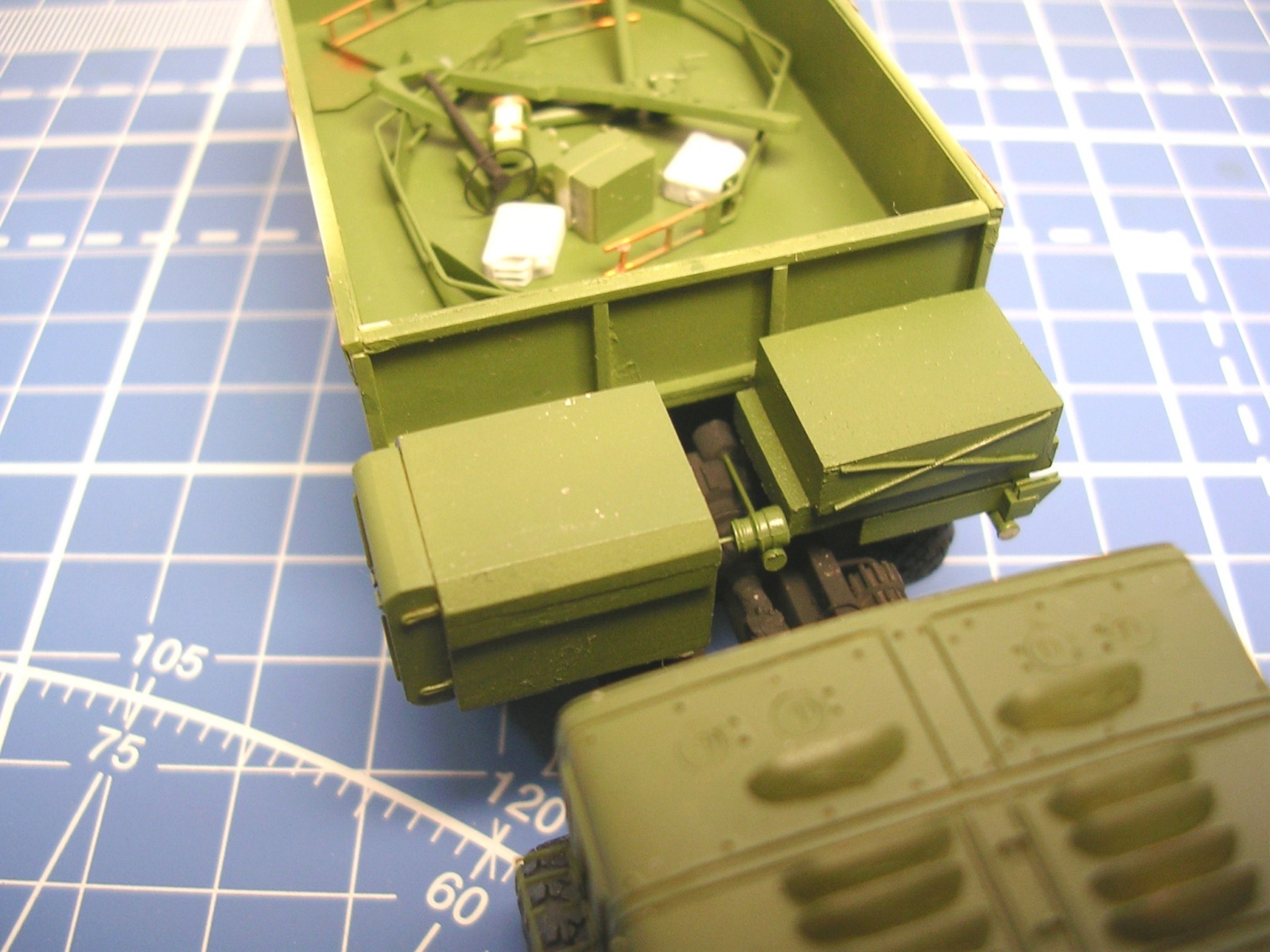 Инструментальные ящики и привод стрелы запасного колеса левого борта и гидравлическая станция правого борта (я так думаю, поскольку генератор должен быть бы в кузове).