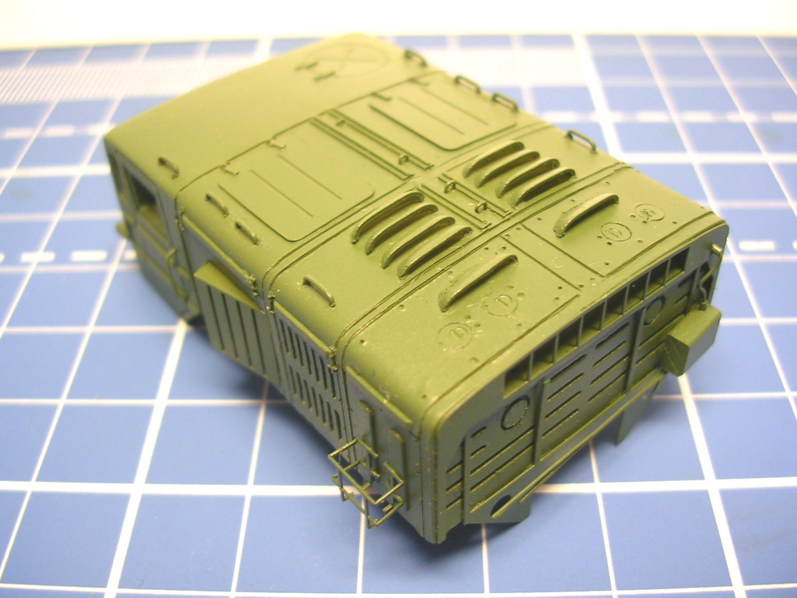 Окрасил кабину и моторный отсек. На моторном отсеке дополнения в виде поручней и замков панелей.