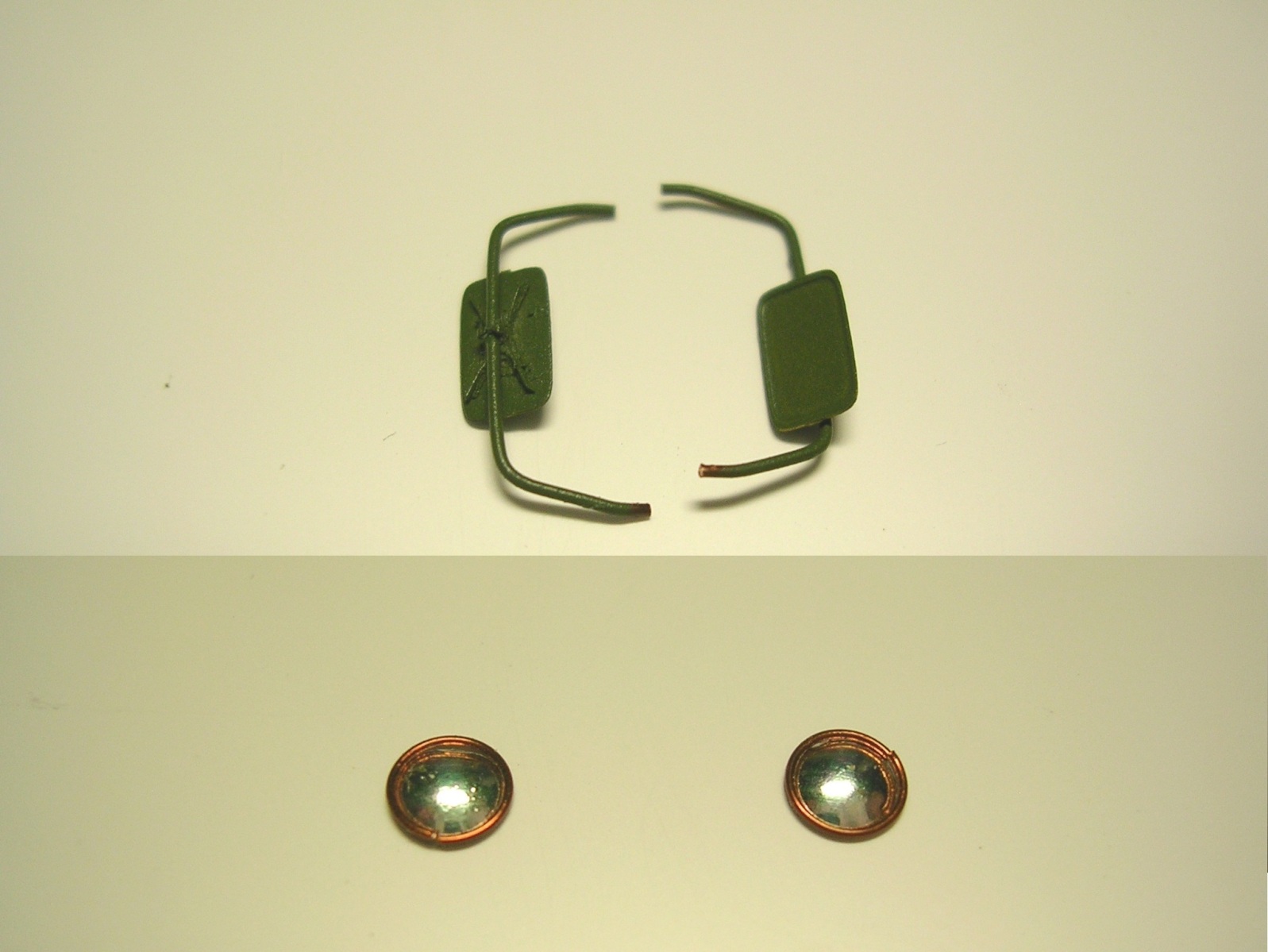 Тоже обзавёлся зеркалами со стойками, передней оптикой. Главную оптику пока не установил, набираю объём окраски в черное (ободки фар).