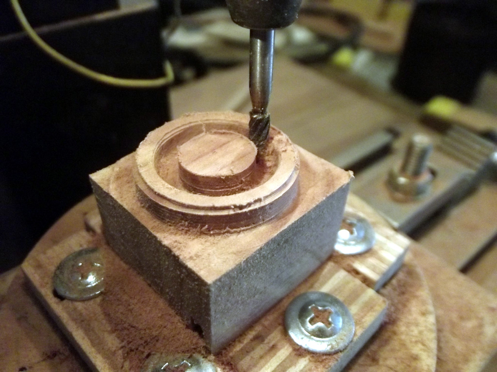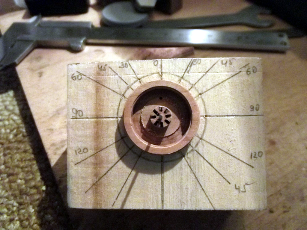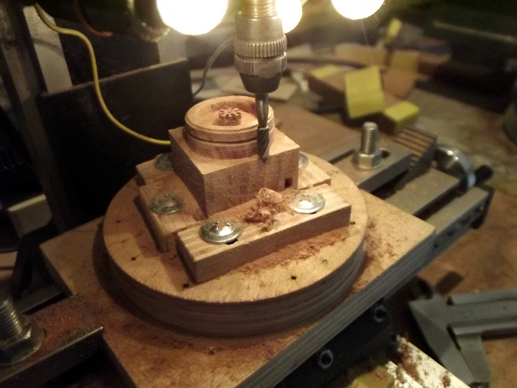 За неимением заводской делительной головки, пришлось изготовить делительную головку "для бедных". С её помощью просверлить обод.