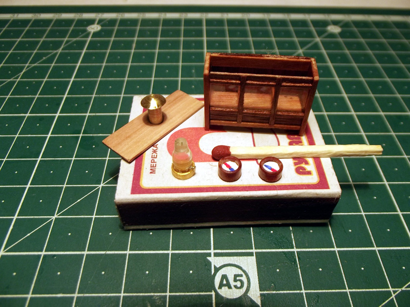 Изготовил кофельнагельные планки и два варианта рустерных решоток. Ячейки 1,5х1,5 и 1х1 мм, что в натуре 7,5х7,5 и 5х5 см. Пока не определился, что поставить на палубу.