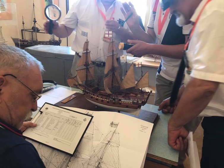 Начался чемпионат Европы по судомоделизму. Отрадно, что в составе Украинской делегации, в компании Мэтров, есть представительница нашего клуба - Оля Данилюк. Болеем за нее, держим кулаки, желаем успеха. Судейство на чемпионате строжайшее. Оценки типа "Красота!", "Суперово!", "Мне нравиться" там не котируются. Модель дотошно сверяется с документацией, все детали, ванты, блочки и пр. рассматриваются через лупу. Вот это, я понимаю, серьезный подход.