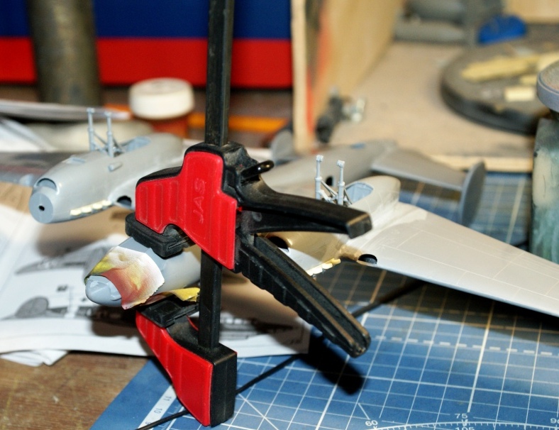 Мотогондолы вклеены, правда не обошлось без зажимов и струбцины.