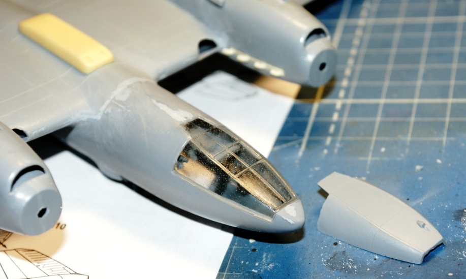 Вот сколько раз говорил себе что не стоит верить инструкции особенно когда в наборе два разных самолета. После сборки подгонки и зачистки, я все таки заглянул в журнал по Пе-3 и оказалось что у Пе-3бис не должно быть оранжереи в нижней части носа там все было зашито наглухо, и в наборе кстати имеется такая деталь так что пришлось все резать.