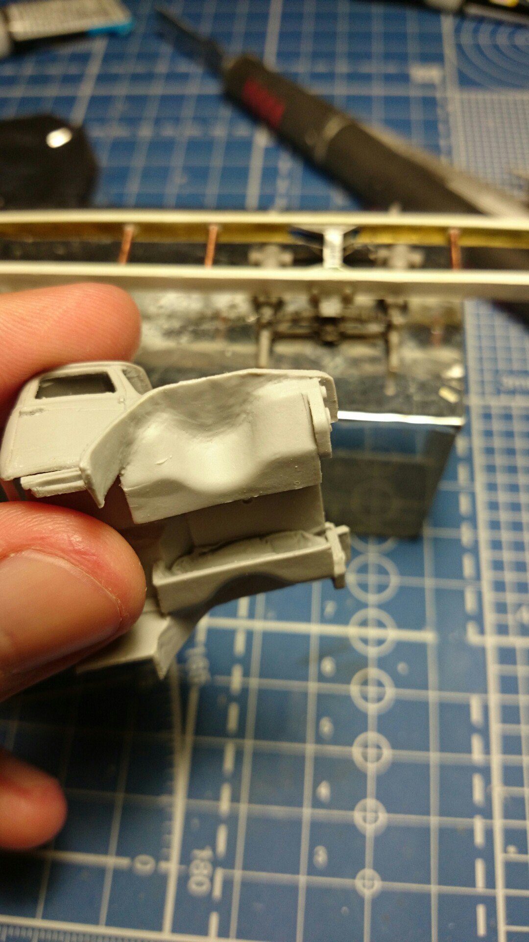 Решил пойти по более простому пути и на той неделе уже получил эту кабину, НО - легче не стало - то что я получил за такие деньги, нет слов что бы это описать.... Основа, капот, решетка радиатора - поведенные, Сильный наплыв смолы на раму лобовых стекол в верхней части. С правой стороны кабины - не ровная расшивка двери в задней части, не ровная внутренняя- задняя часть рамы бокового стекла, не ровная часть между нижней дверью и ящиком, в нижней правой части двери - скол. Ниши колес под крыльями - не ровные, бугристые. Кромка крыльев - где то заметна что была, но по большей части её уже нет...  Пухлики - тоже деформированные - смещение пресс форм (