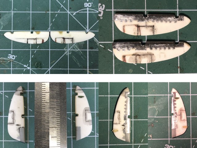 Еще завершил рули высоты и поворота. Они хоть и изготовлены на основе старых, но приведены в соответствие с чертежами (японскими