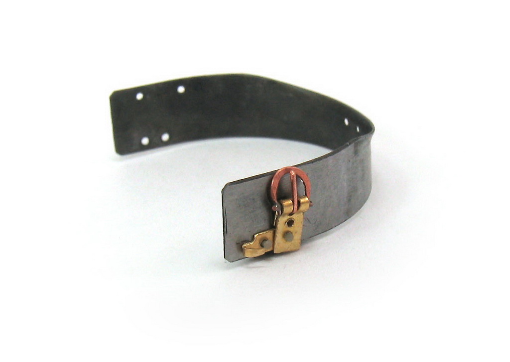 Сделал хвостовик для одной пряжки, шепотом прислонил к пластине. Это верхняя горизонтальная пластина. Как и ожидалось, великовата пряжка