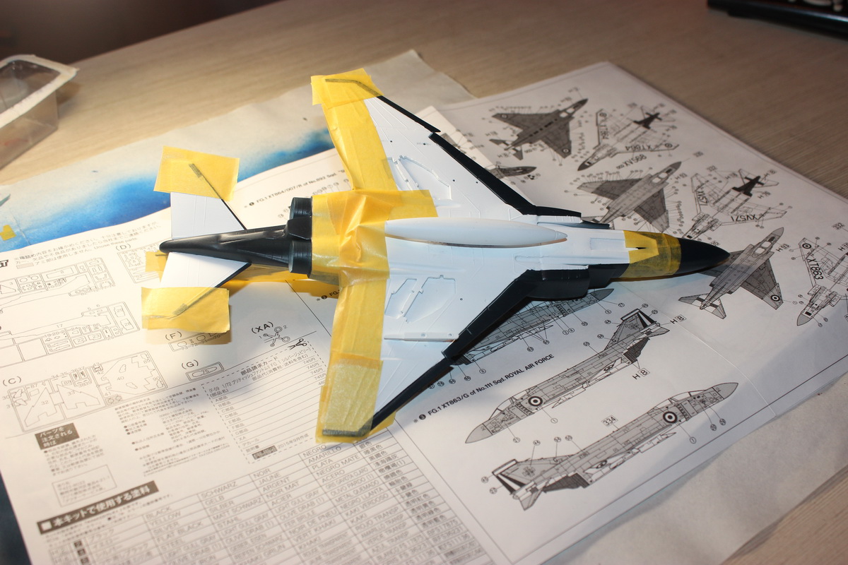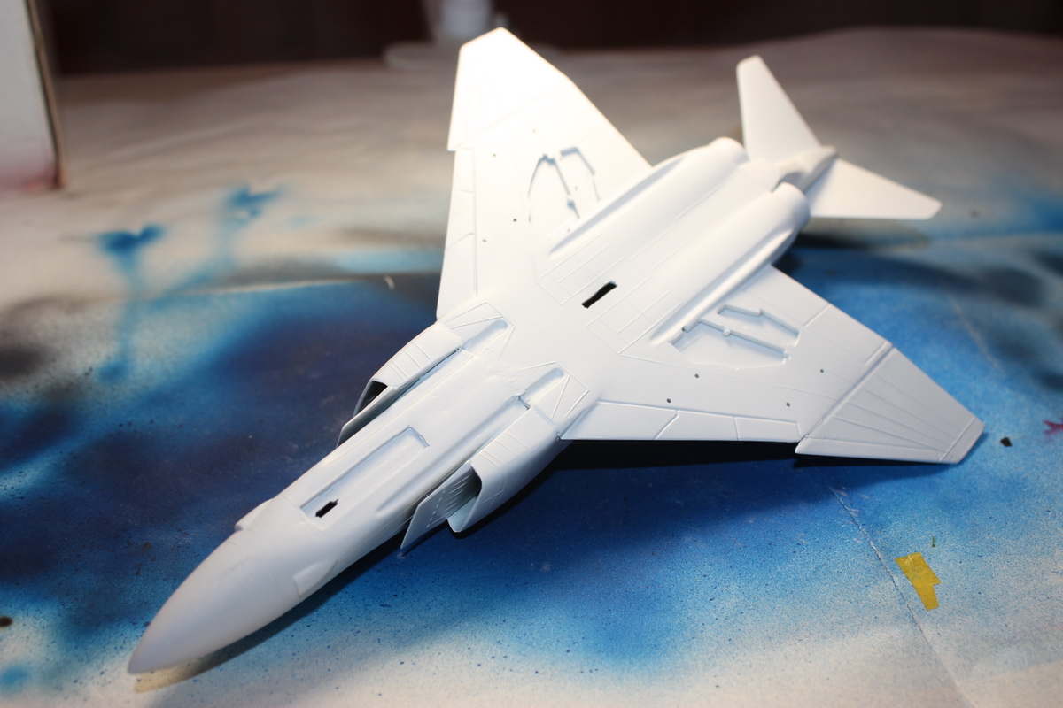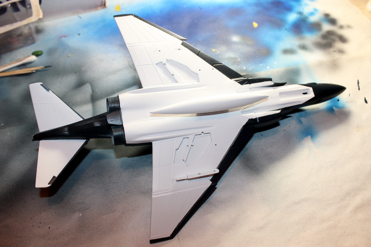 Вчера покрасил низ и сопутствующую мелочевку по белому грунту белой краской...на фото ни чего не поменялось.Начал маскировочные работы для покраски верха.