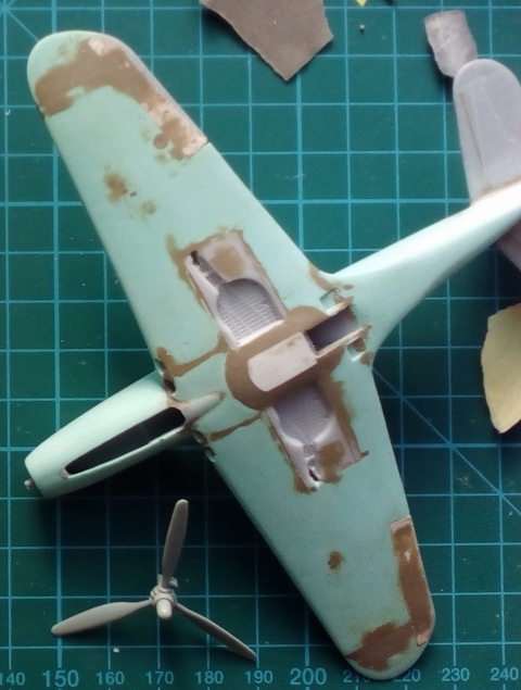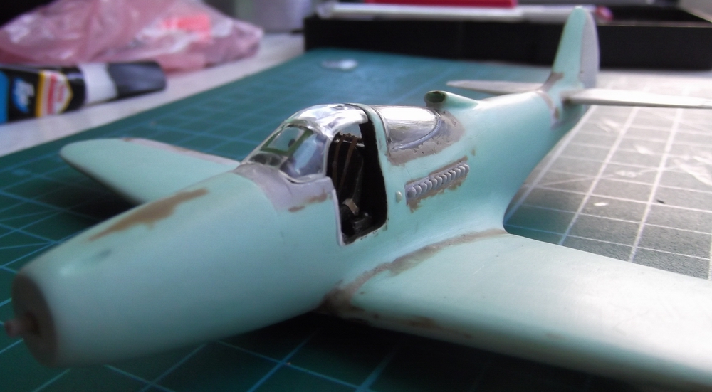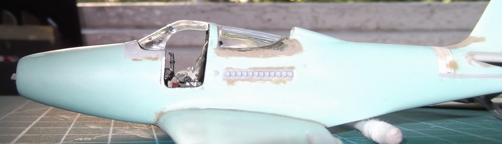 еще створки системы охлаждения добавить, "трубу" соединяющую рули высоты и думаю доклеить самоклейкой переплет фонаря, затем носовой отсек, капот и лючки. потом загрунтую...