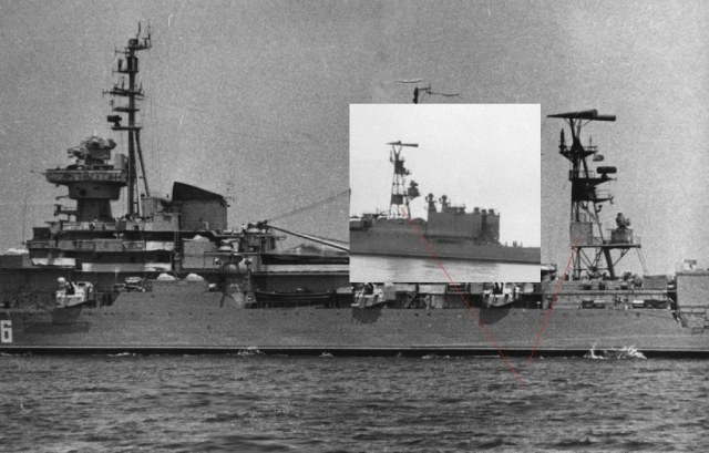 Мачта на Сенявине и Жданове разные. станция наведения Осы стоит на площадке. И стоит по другому. Хорошо видно как расположены плоты перед ангаром. Это после мая 1977.