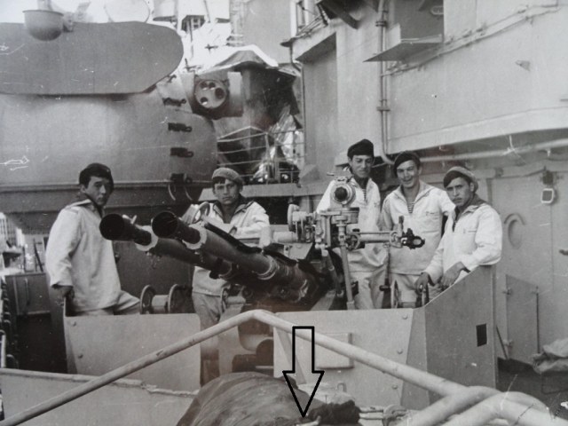 Это Сеня. Станции Рысь, на Жданове их нет, как нет и самих автоматов АКА 230. Высокий подиум (*барбет) Осы. Хорошо виден трап на подиум и леерное ограждение.