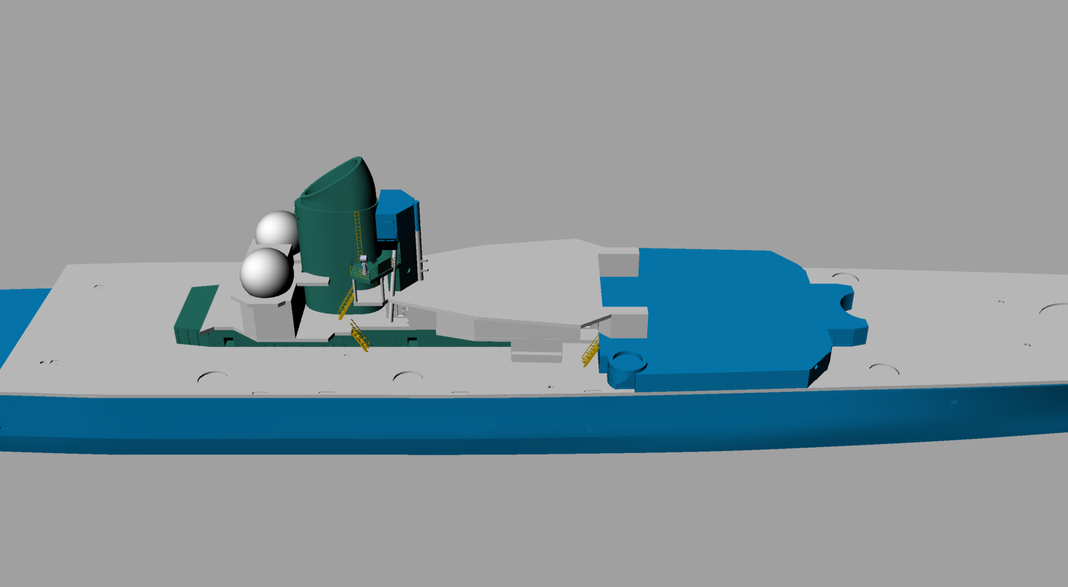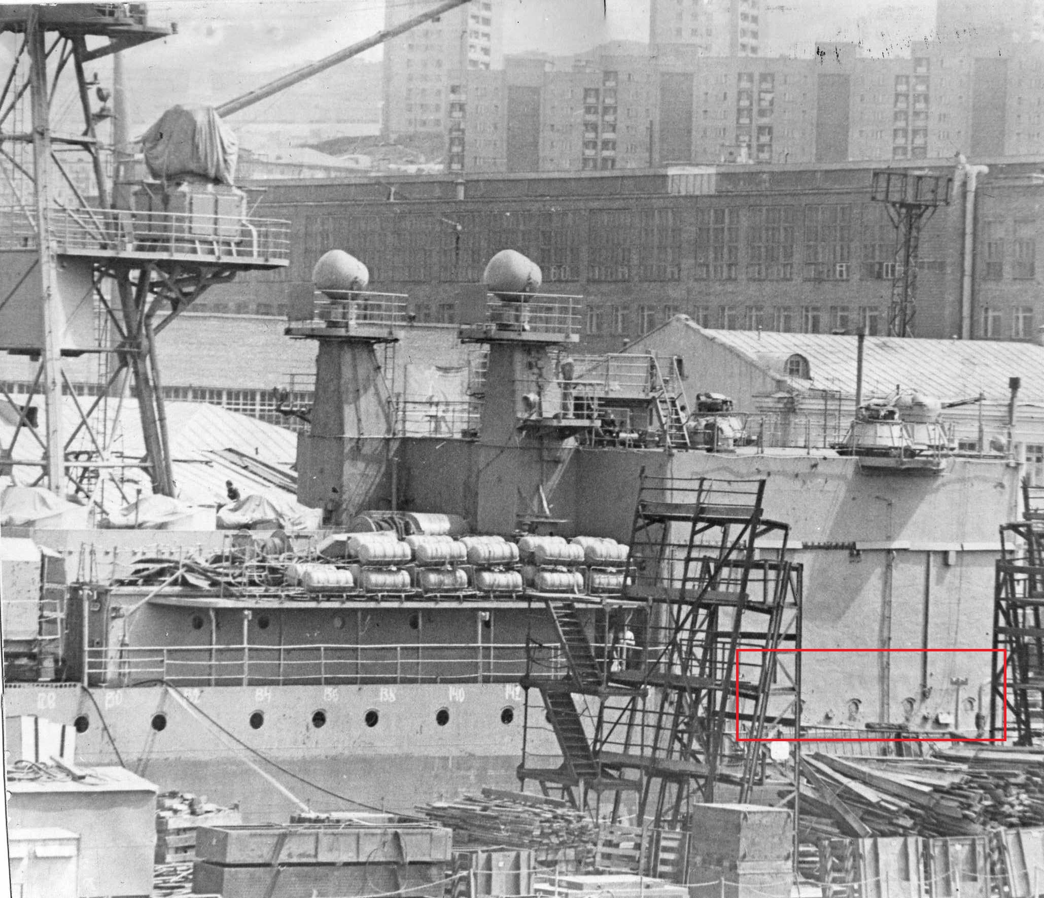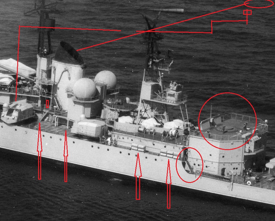 @navy написал:Площадка на которую опирались фундаменты шаров подпирали пиллерсы.Трапа с площадки БИП на площадку ходового у боевой по правому борту не было как на других! На Жданове тоже!Просвет между надстройкой и второй башней ГК (мне) кажется великоват.