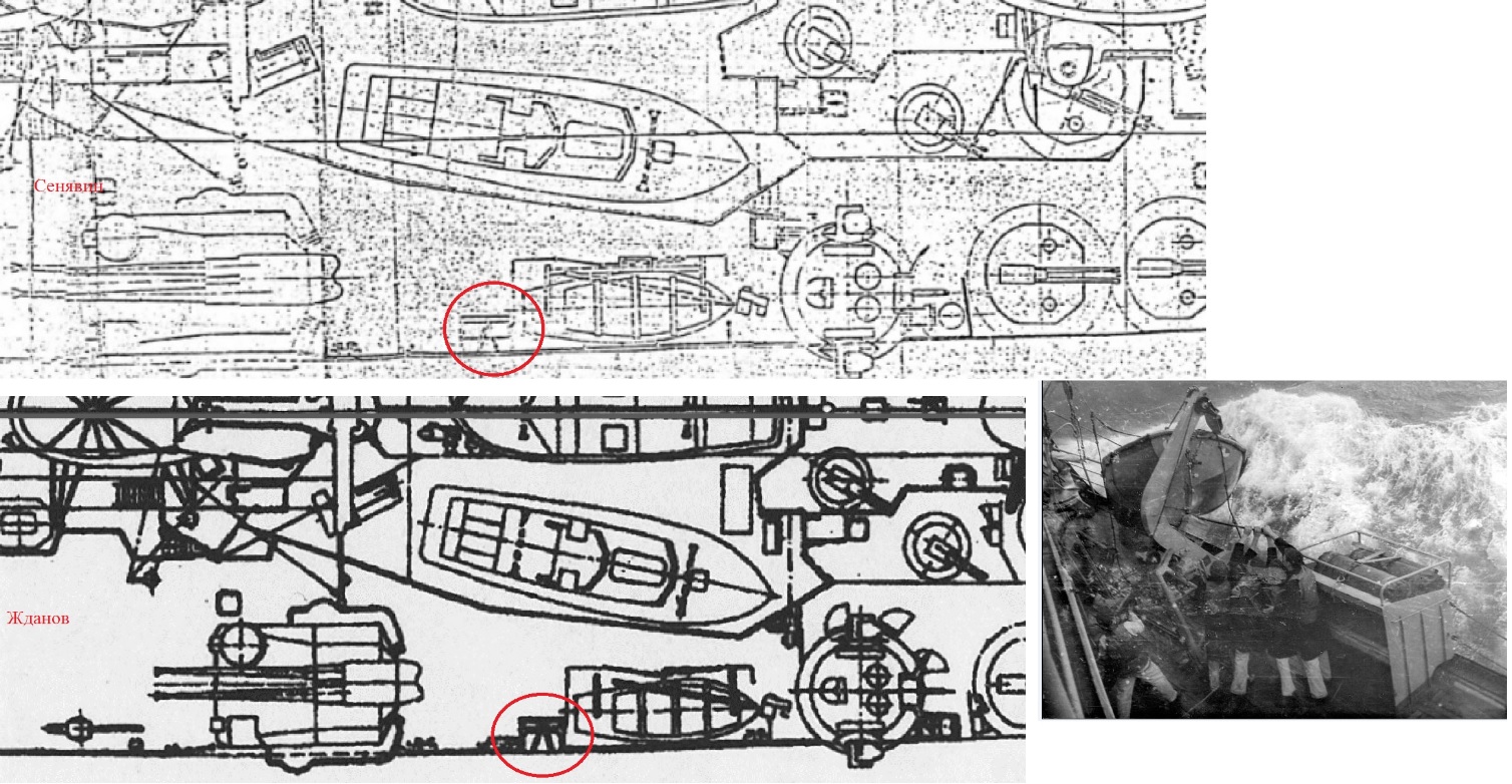 А вот и снимок шлюпки. Это Жданов, можно и на Сенявине , вот только сетка с плотами была лишь на Жданове. Это правый борт.....