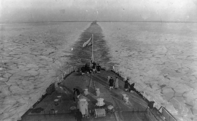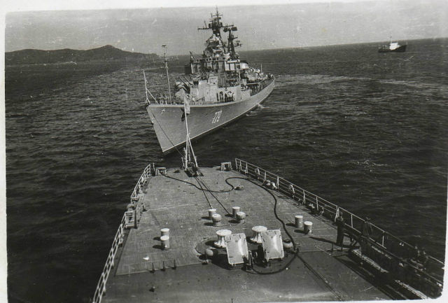 Это фото знакомо. было у меня оно и в хорошем качестве, но пропало вместе с альбомом. Холодная зима 1976. Шуга даже Золотой рог забила и у 33 лед был. При выходе стоял на руле старшина команды, я был в штурманской на подвахте. Там спокойней и можно было полюбоваться этой прелестью. прошли Русский и заступила первая смена и я на руль, познал прелести этого кошмара. Но Сеня слушался не плохо даже в такой обстановке, только роба была мокрая от пота и руки ныли.... Фото потом наш почтарь задарил. (почта, посылки, библиотека и нештатный фотограф зама единственный на корабле мог ходить с фотоаппаратом открыто)