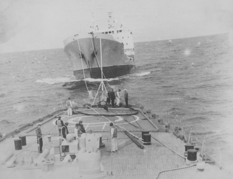Корабль на стопе.... или в дрейфе по другому. Частенько стрекозы принимали и далеко не на полном и даже не среднем, чаще всего на малом. Если была возможность то спускали баркас с аварийной партией.