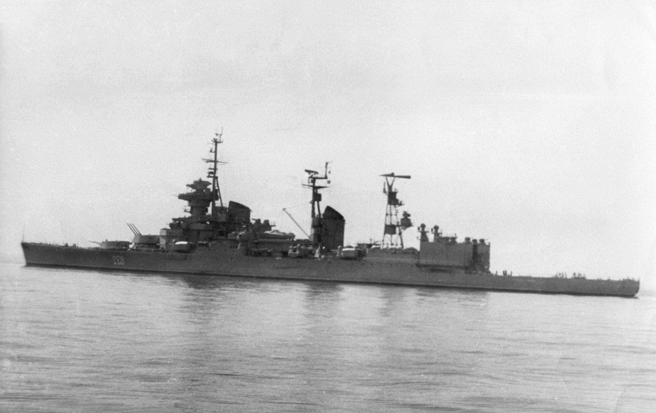 Как утверждают это Сенявин, но чистый БИС. Люк по левому борту виден, Потом когда прошел большой ремонт люк по левому борту перед первой башней ГК пропал.