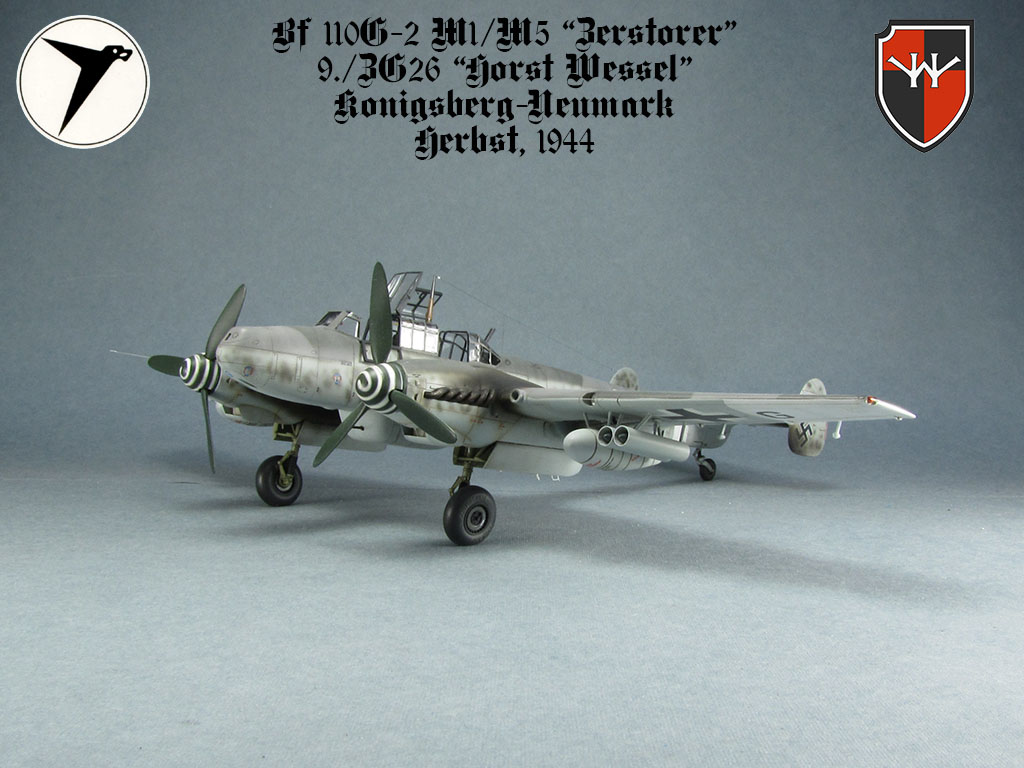 Все, зверюга закончена! Получился Bf 110G-2 M1/M3/M5 из 9./ZG26 "Хорст Вессель", аэр. Кёнигсберг-Ноймарк, осень 1944г. Теперь выкроить время на фотосессию и перелет в прихожую!