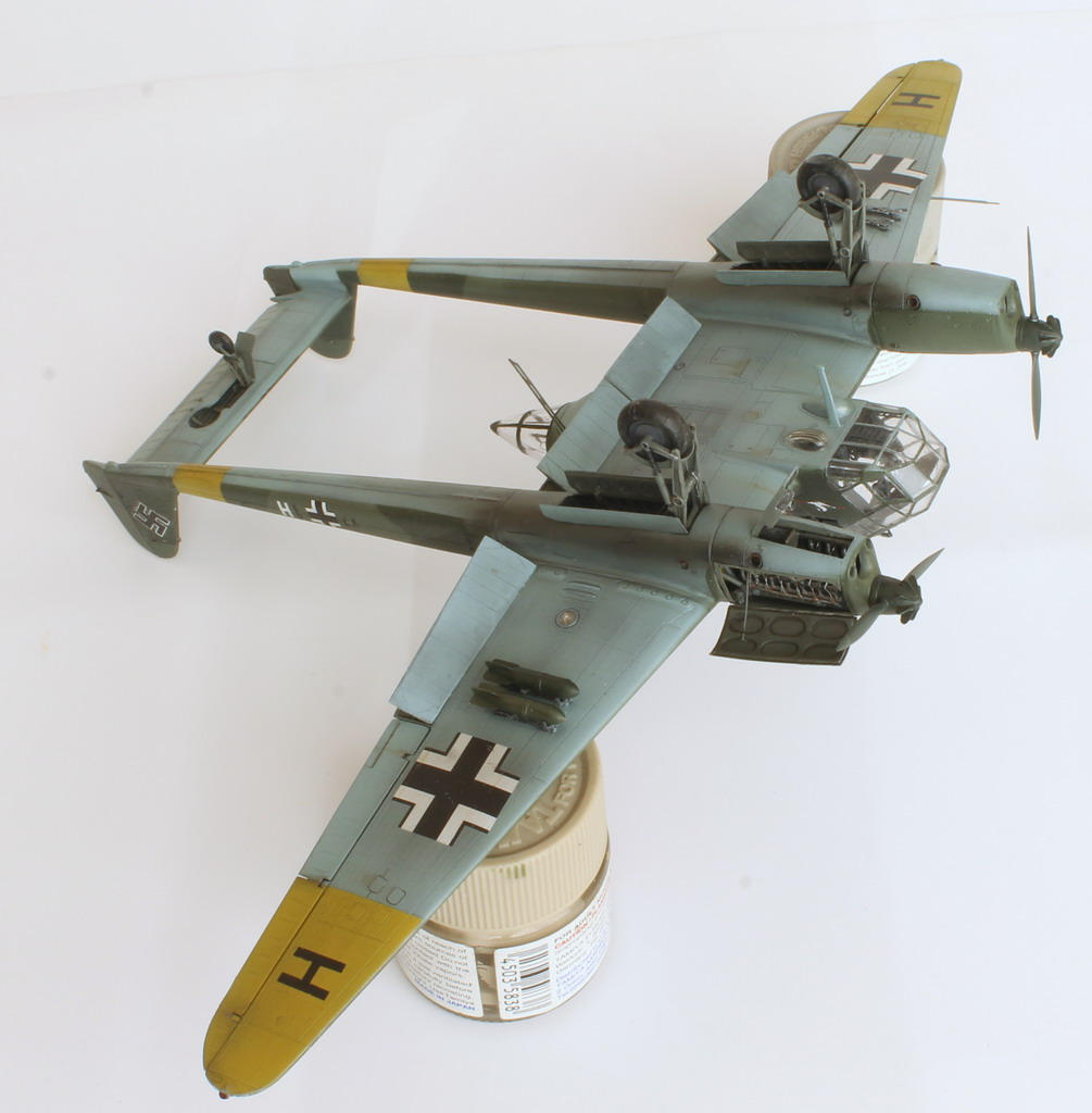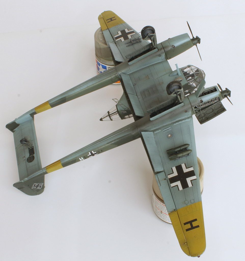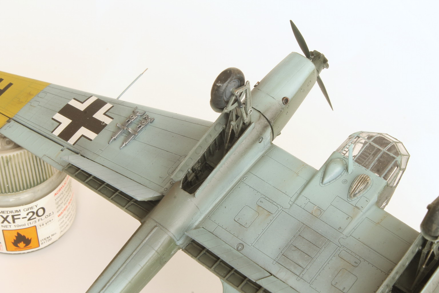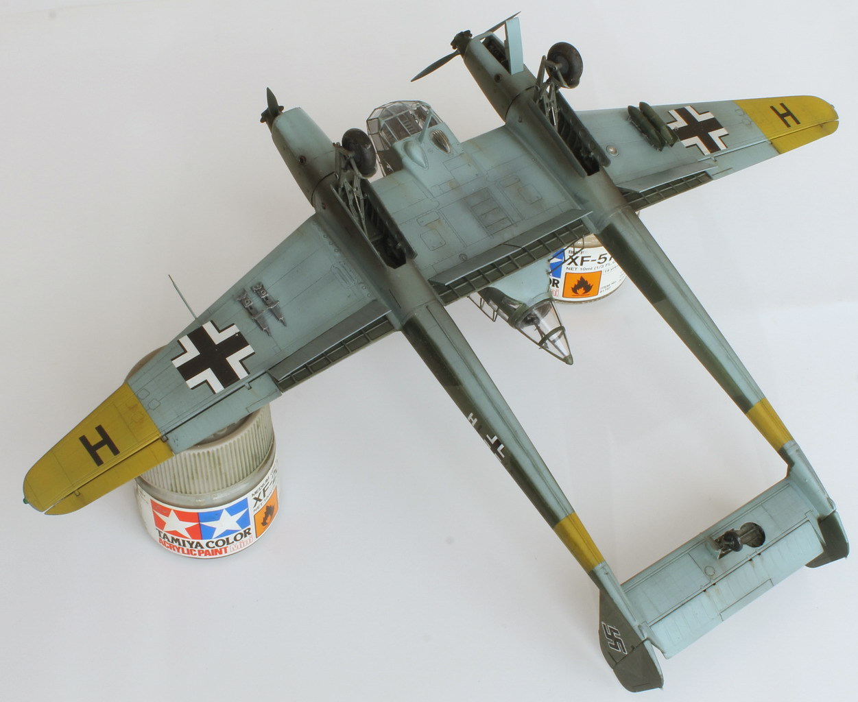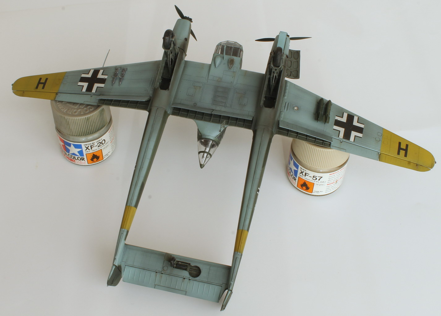 Прешейдинг - Тамия XF-1 сверху и по бокам, RLM-66 - снизу и под желтым RLM-4. Легкий постшейдинт сверху по черно-зеленому РЛМ-70 тамиевским "смогом".