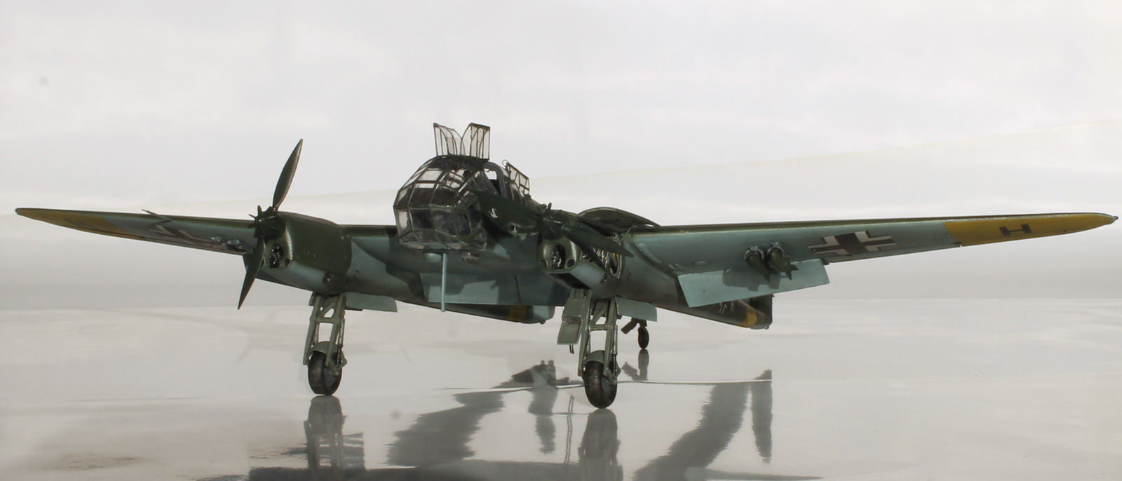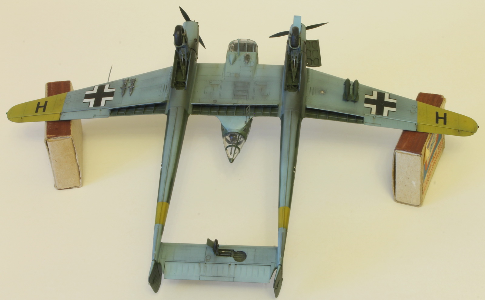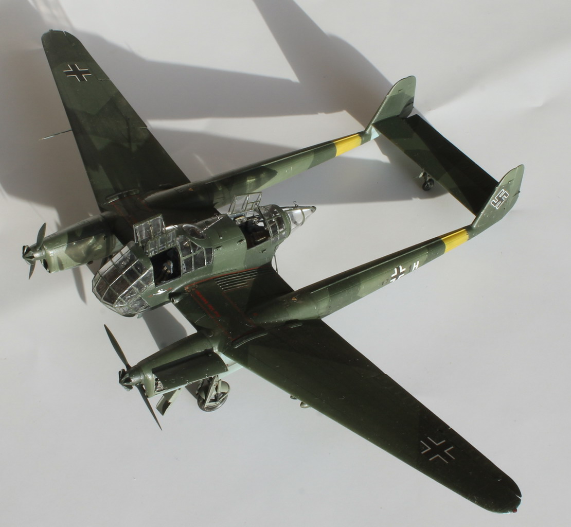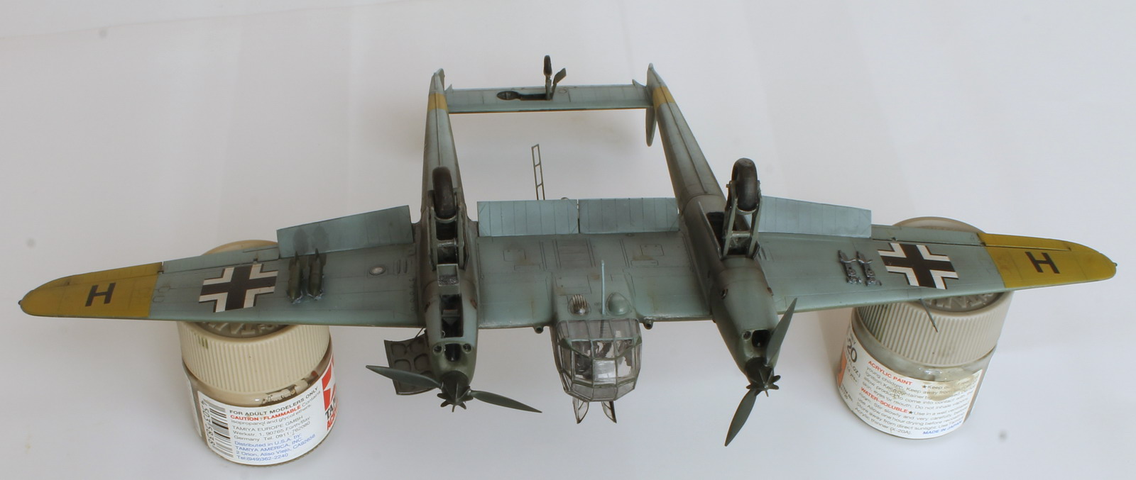 Прешейдинг - Тамия XF-1 сверху и по бокам, RLM-66 - снизу и под желтым RLM-4. Легкий постшейдинт сверху по черно-зеленому РЛМ-70 тамиевским "смогом".