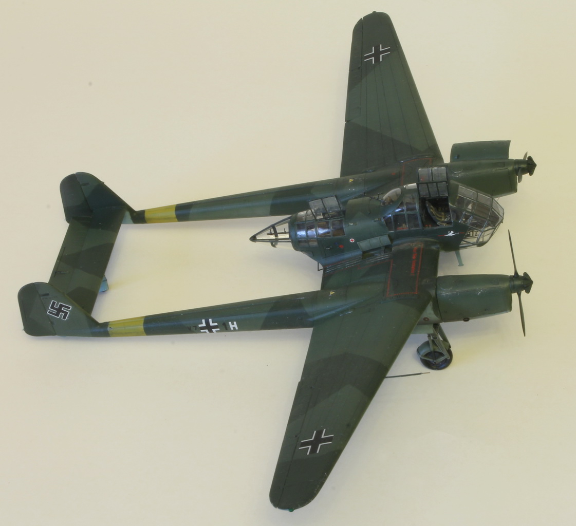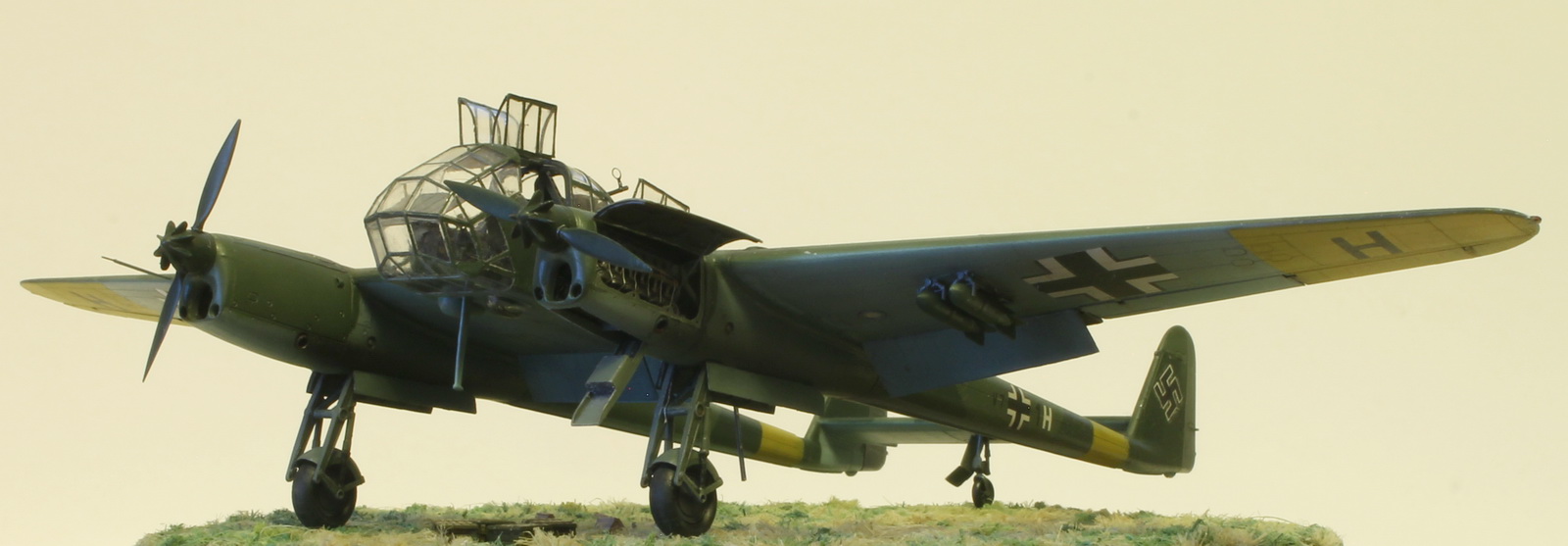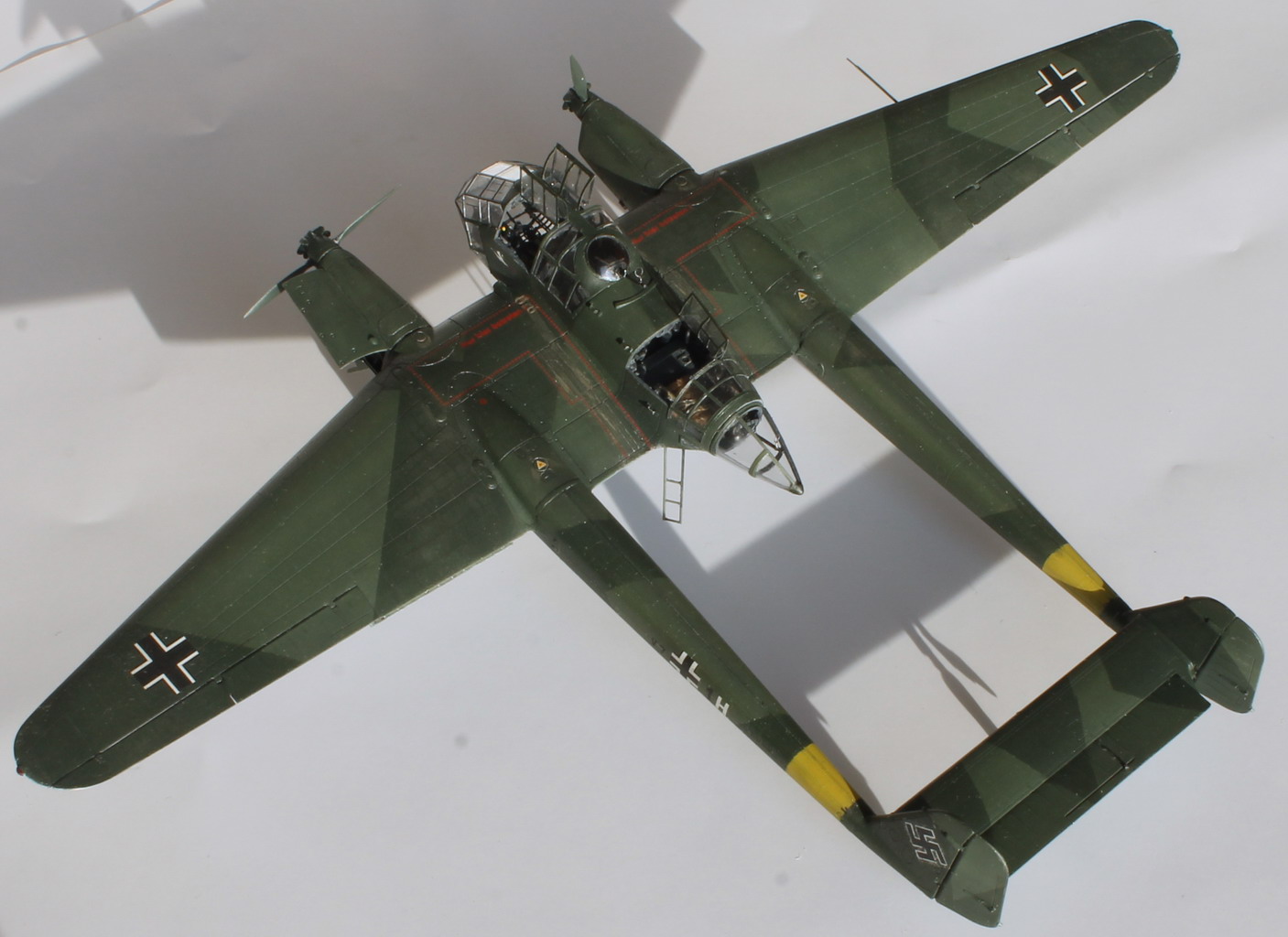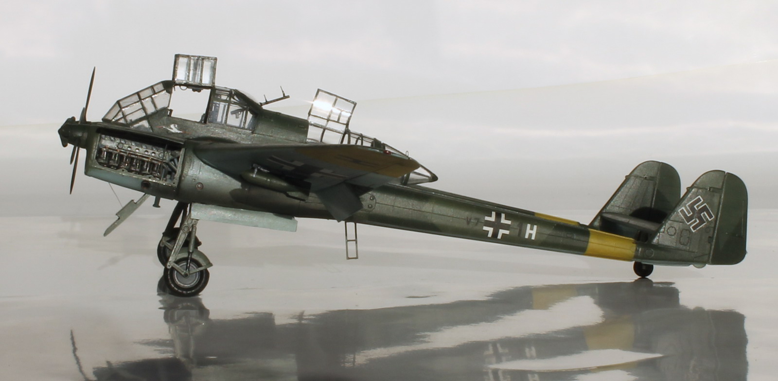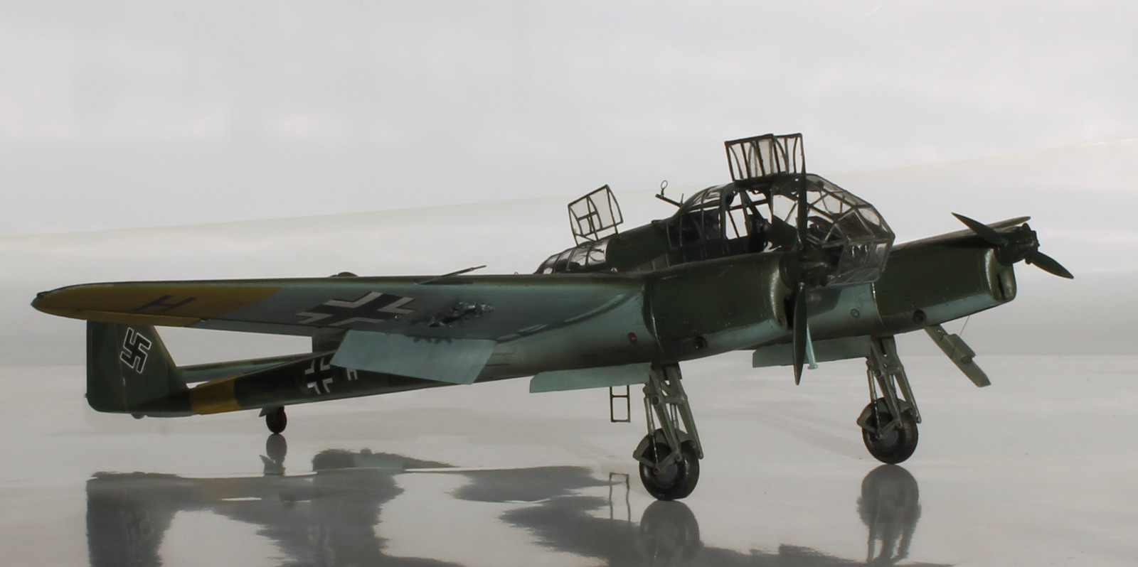 Прешейдинг - Тамия XF-1 сверху и по бокам, RLM-66 - снизу и под желтым RLM-4. Легкий постшейдинт сверху по черно-зеленому РЛМ-70 тамиевским "смогом".