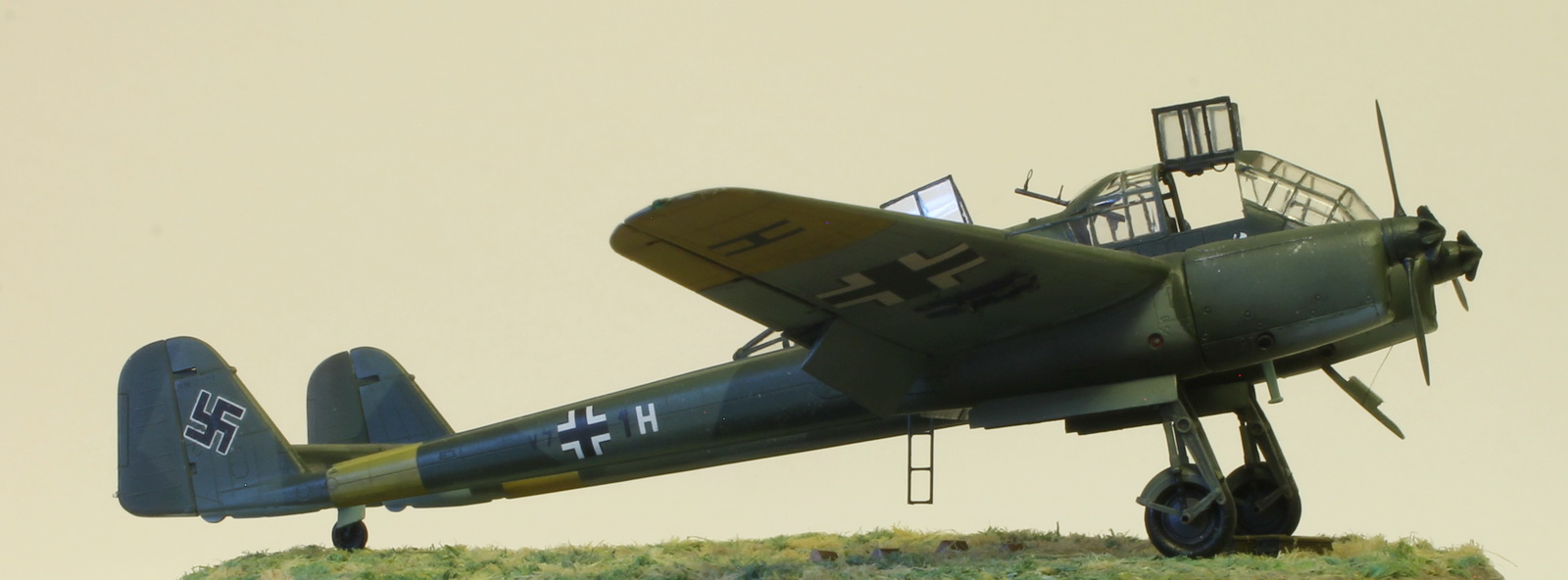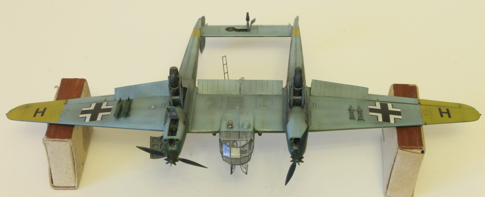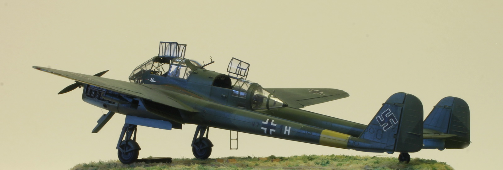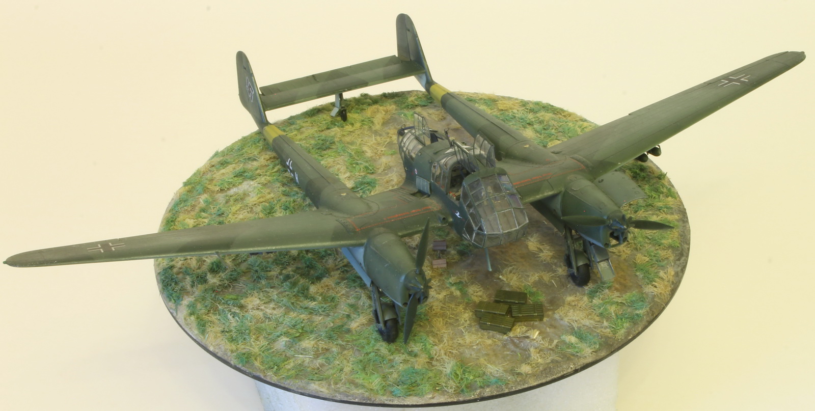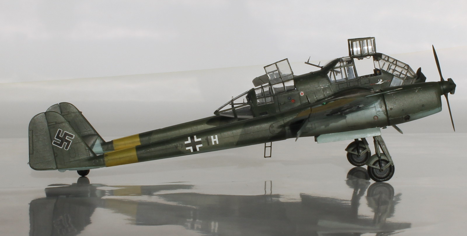 Прешейдинг - Тамия XF-1 сверху и по бокам, RLM-66 - снизу и под желтым RLM-4. Легкий постшейдинт сверху по черно-зеленому РЛМ-70 тамиевским "смогом".