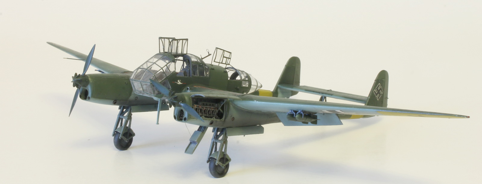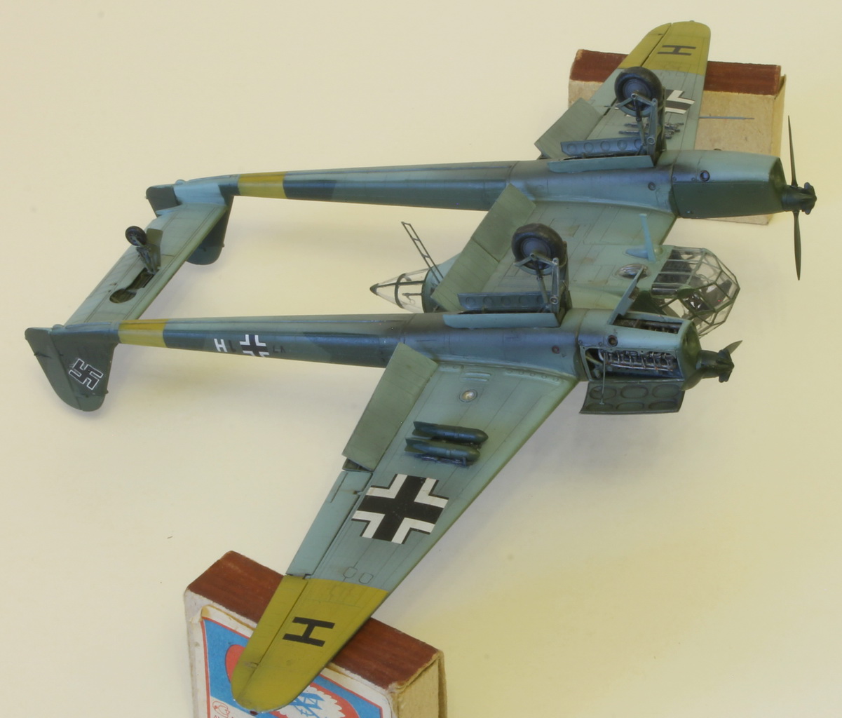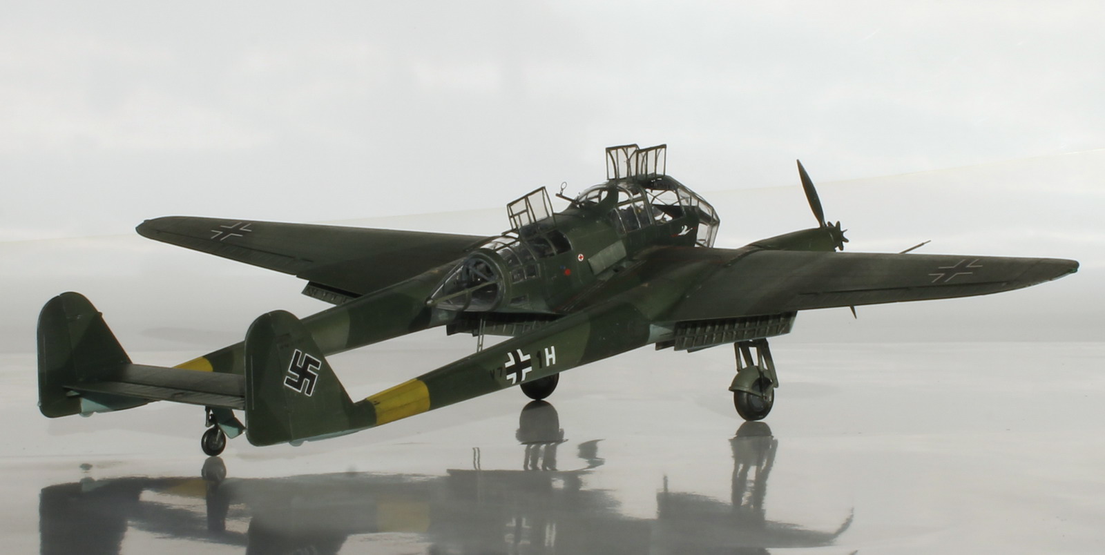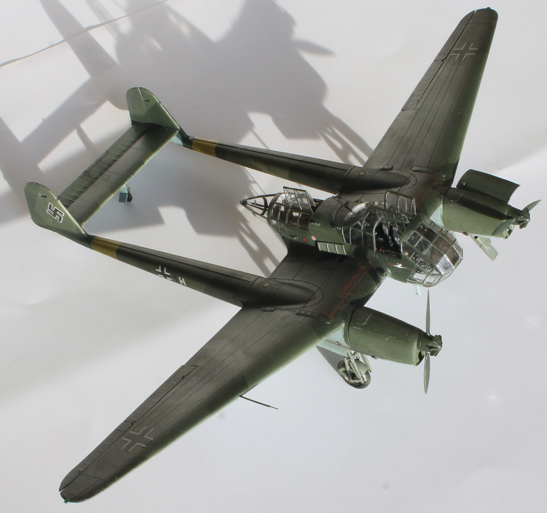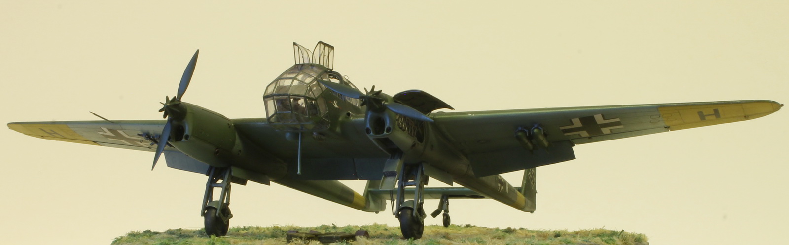 Прешейдинг - Тамия XF-1 сверху и по бокам, RLM-66 - снизу и под желтым RLM-4. Легкий постшейдинт сверху по черно-зеленому РЛМ-70 тамиевским "смогом".
