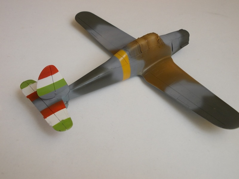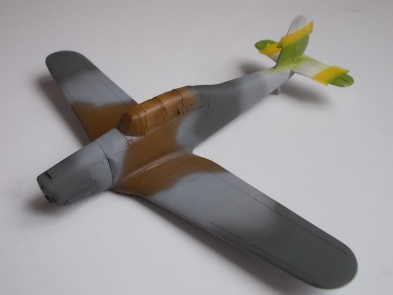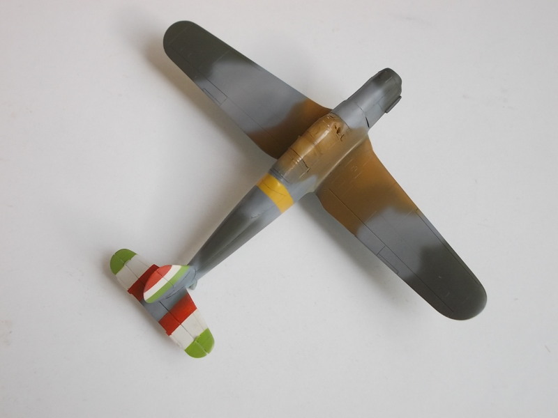 Законцовки крыла буду перекрашивать.Вместо зелёного какой-то серо-зелёный получился.
