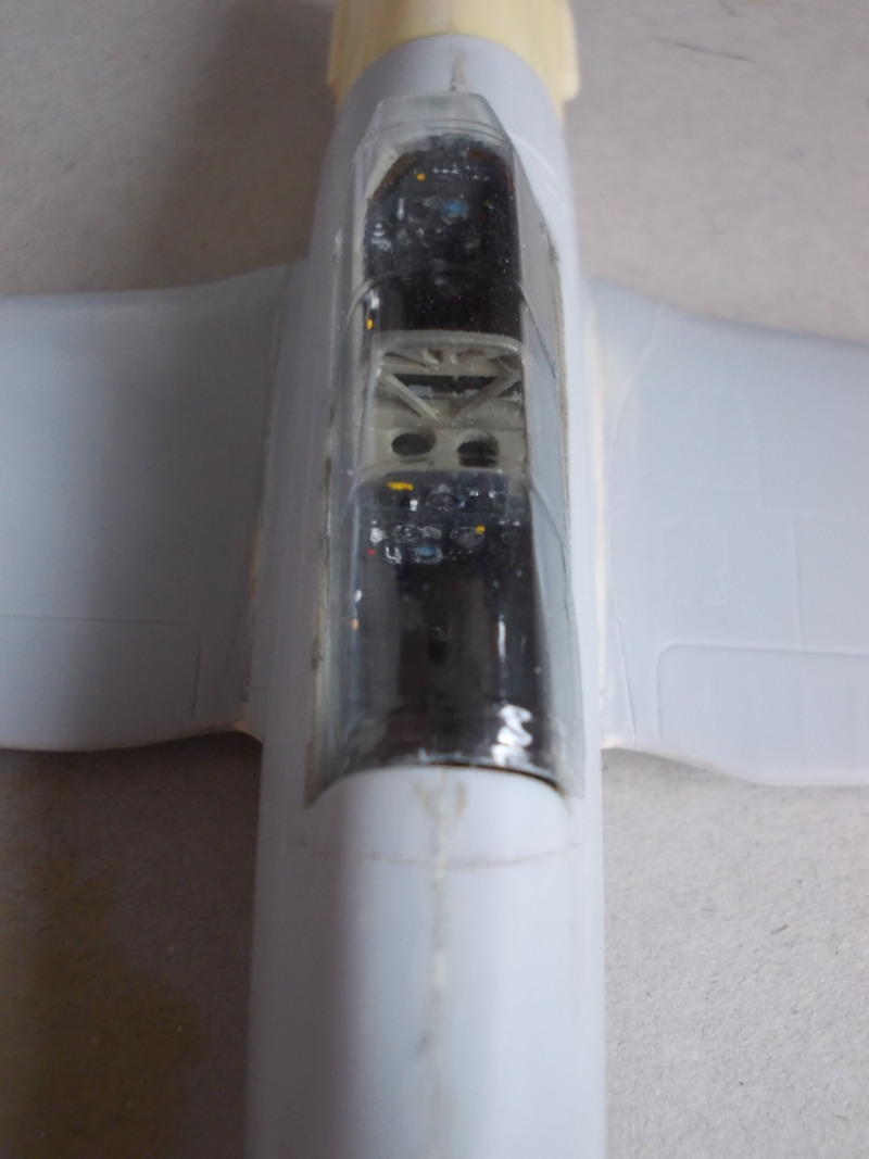 Движемся к завершению стройки.Немного доработал низ центроплана и поставил фонарь пилотов.Резать не стал,слишком тонкий,и так всё видно.Имеем: