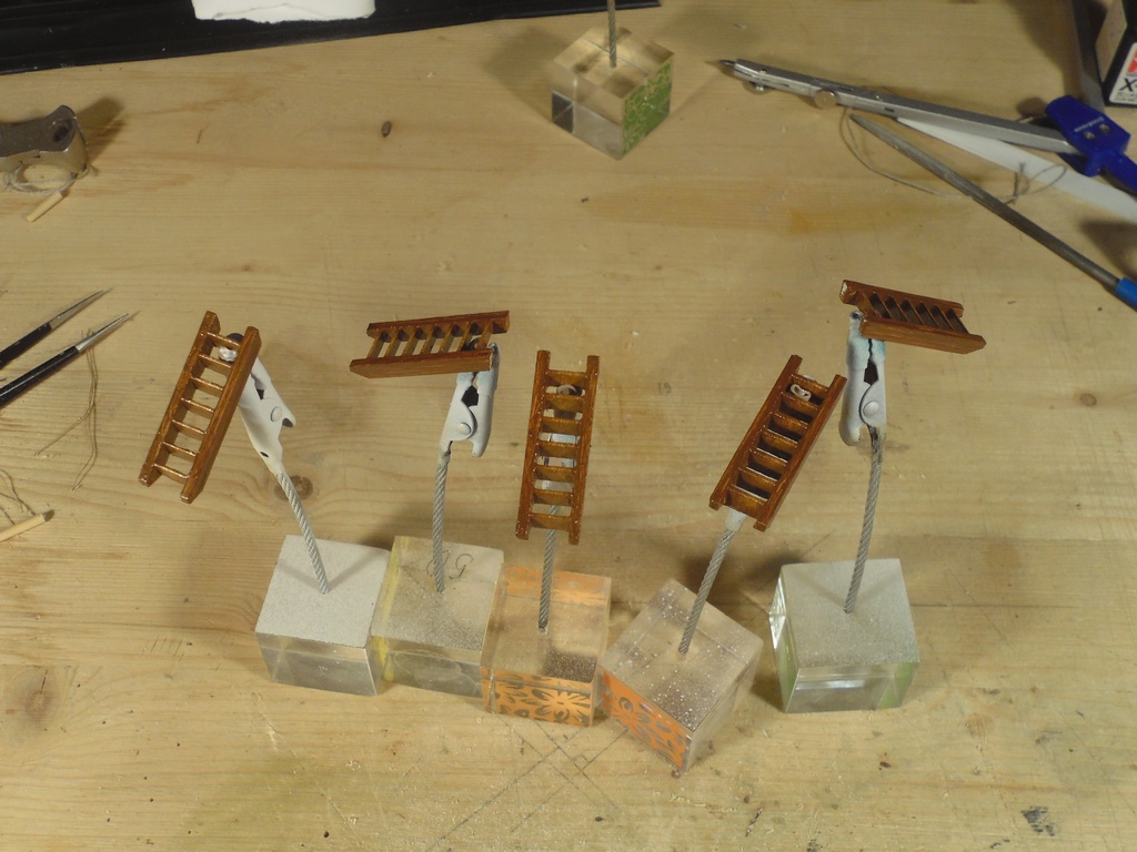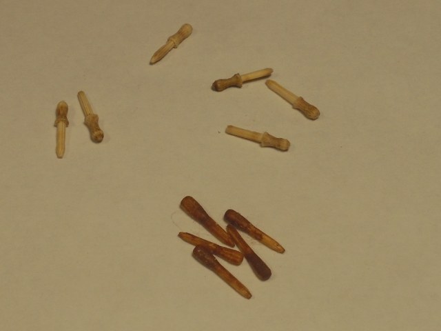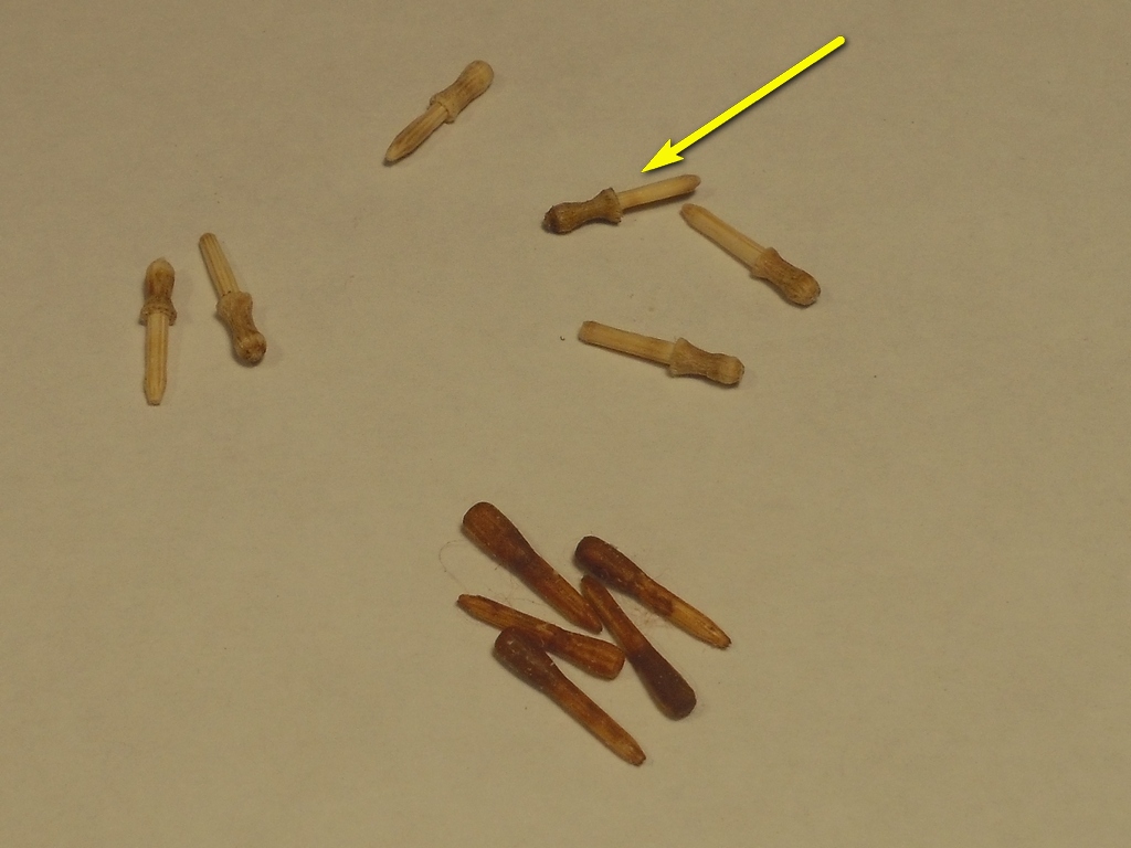Потратив много времени на разглядывание диорамы по ссылке Володи (@Jokker) и с трудом оторвавшись, накрутил нагелей из бамбука. Подсчёт не вёл и поэтому, наверное не все сделал. Но попробовать установить их на модель не утерпел. Итак, результат.