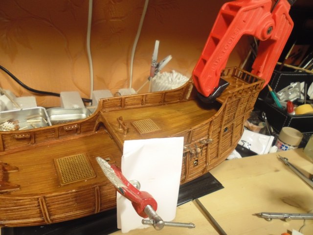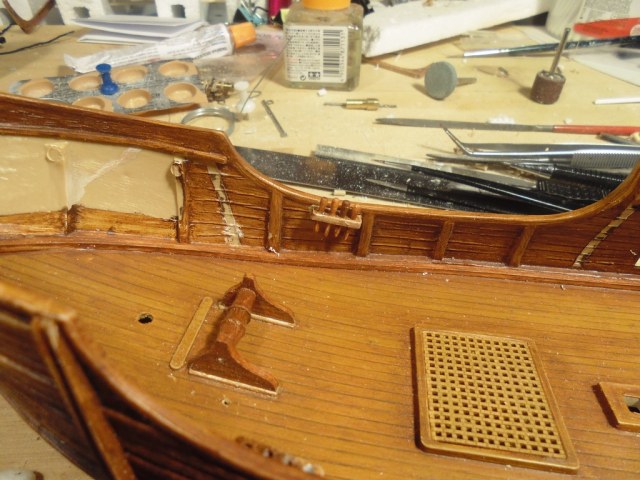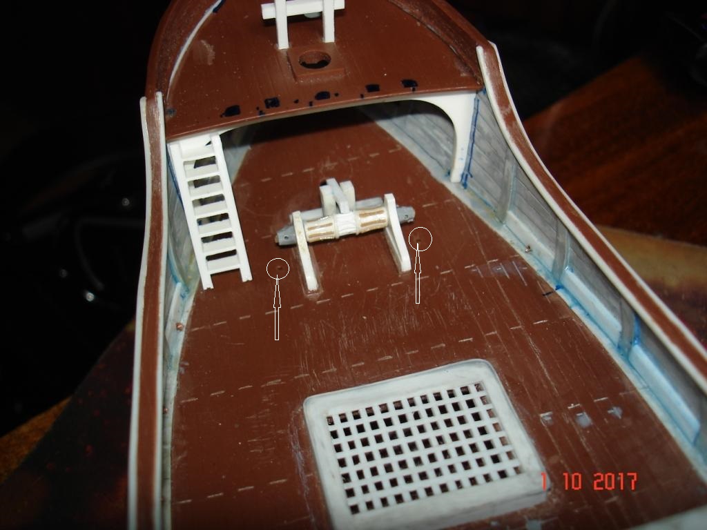 Вклеил на место палубу юта, установил брашпиль.
