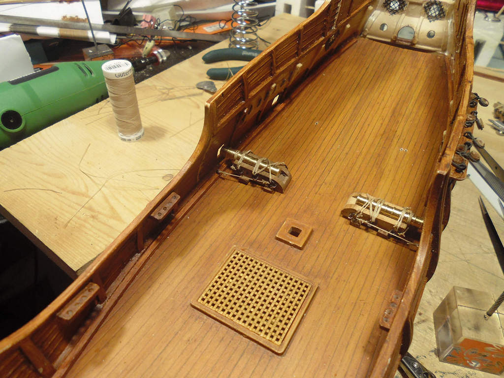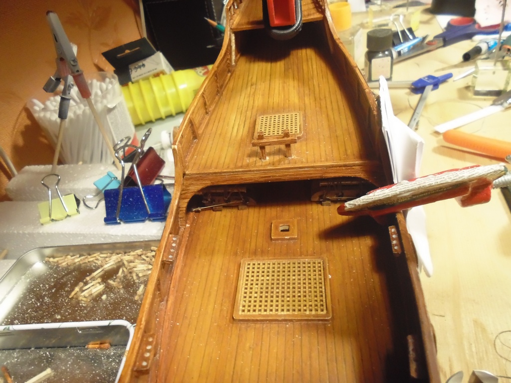 Сегодня берусь за окраску маслом люков пушечных портов и палубных трапов.