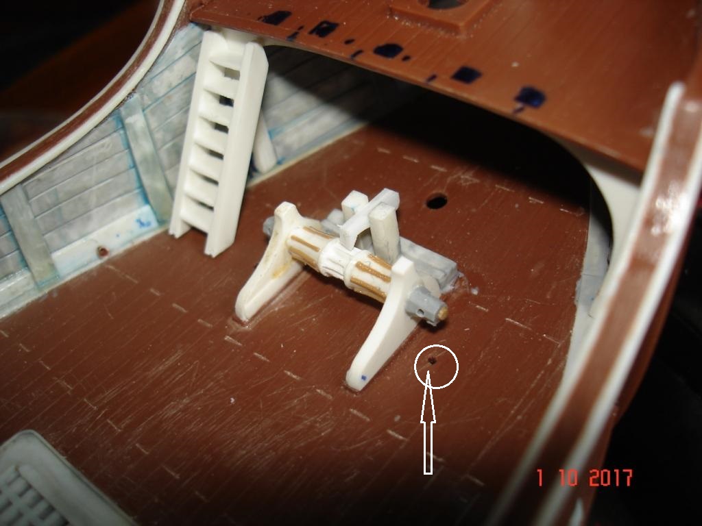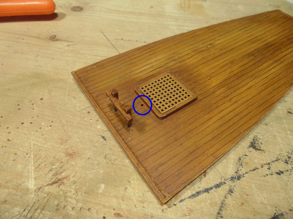 На палубе бака возле рустерной решётки есть отверстие (обведено синим).
