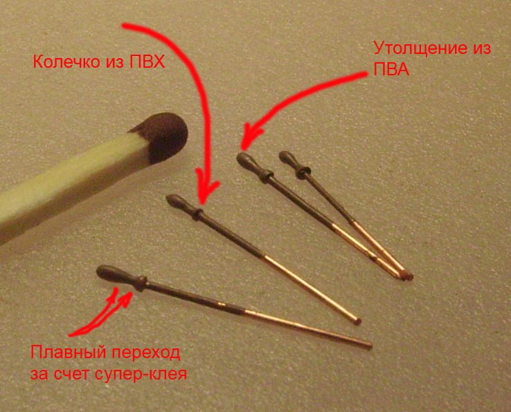утолщения из ПВА на кончике проволоки. Стекая вниз, клей также образует плавный переход.