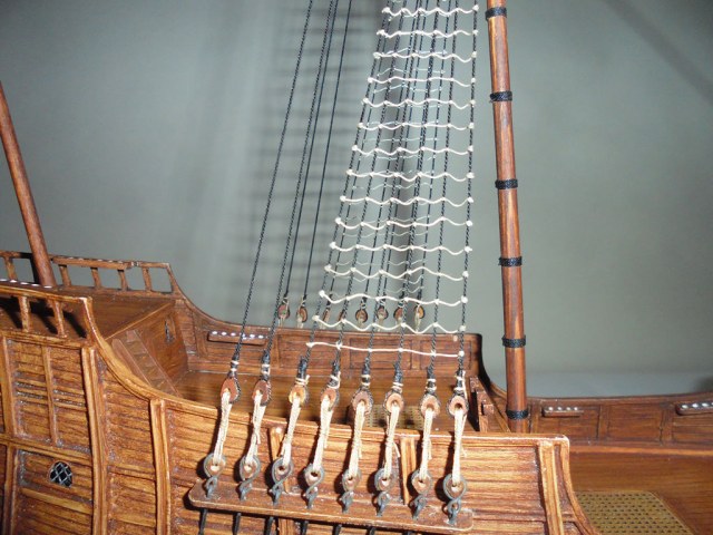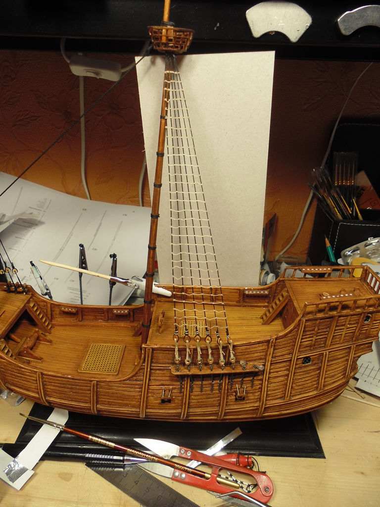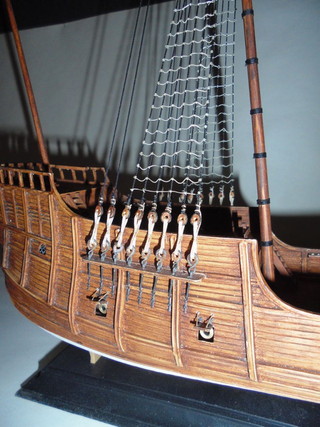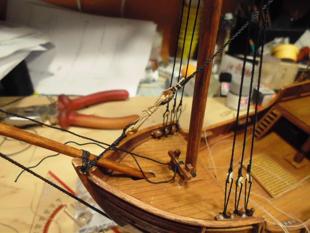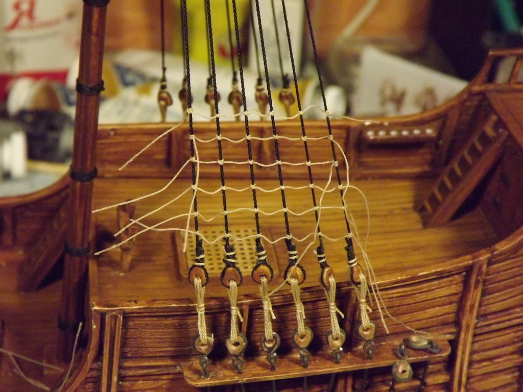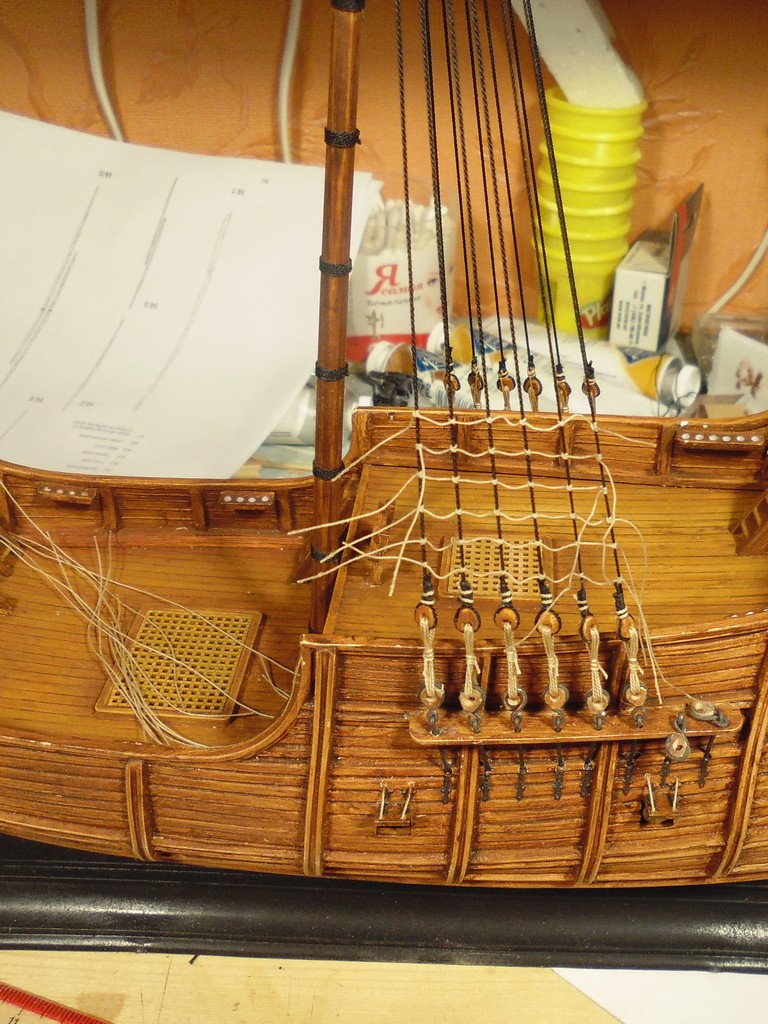 Серая нить состареного такелажа,была бы более уместна на этой посудине.