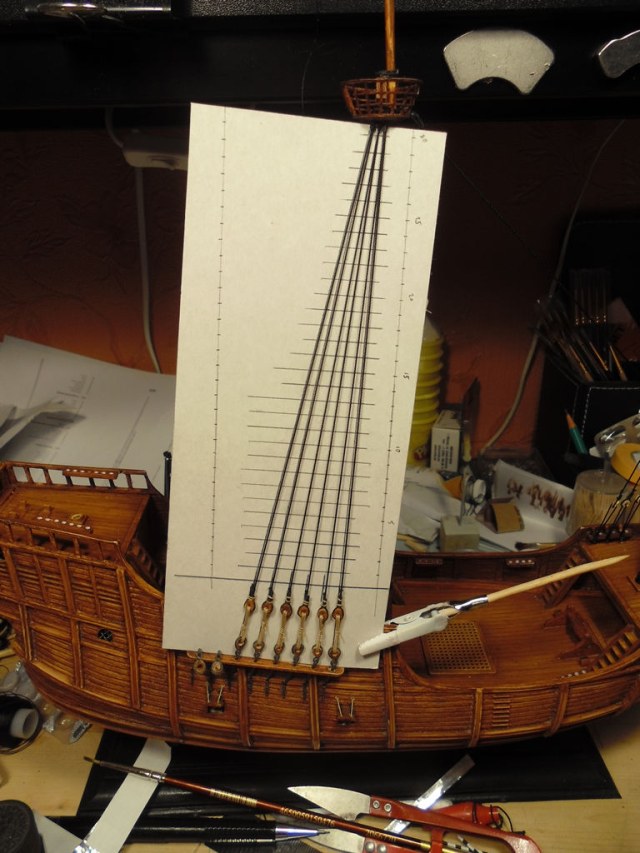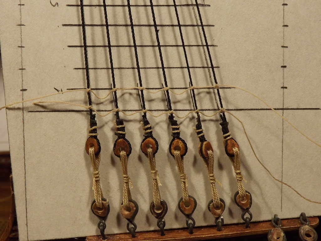 @Дмитрий из Тулы написал:Кстати, слева на фото на палубе лежат заготовленные отрезки на выбленки той же нити - цвет совсем другой!