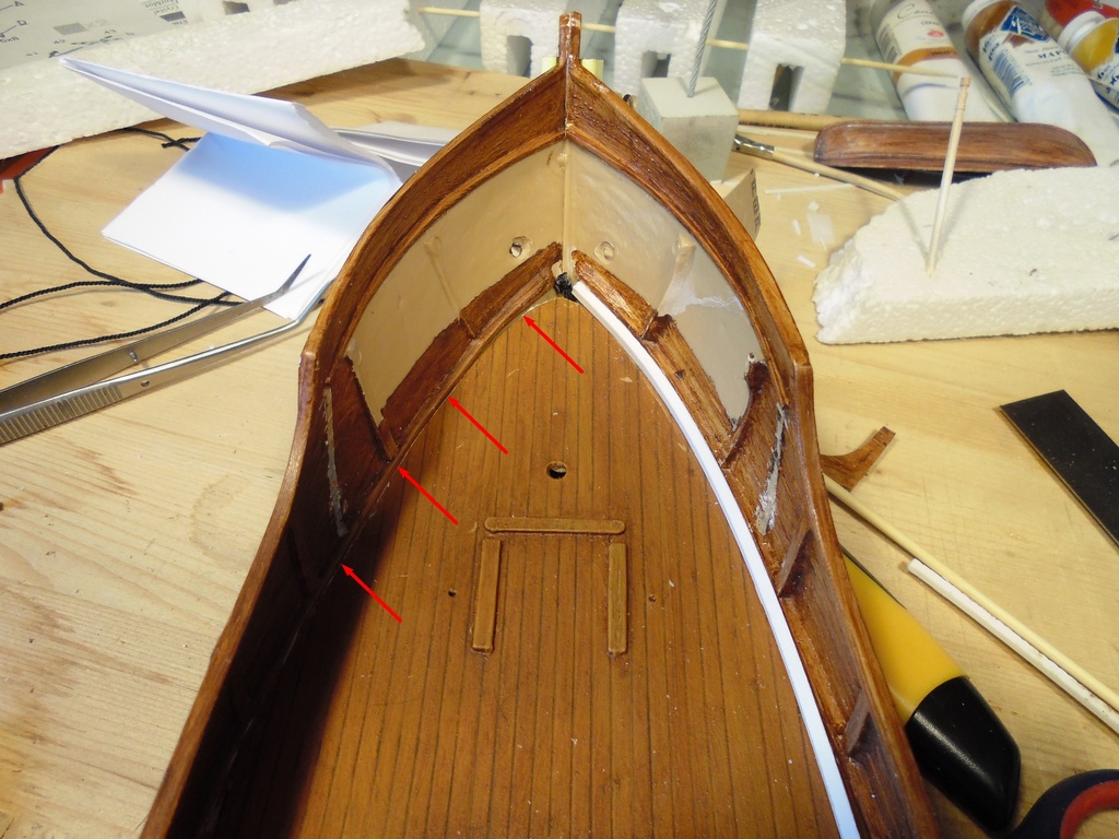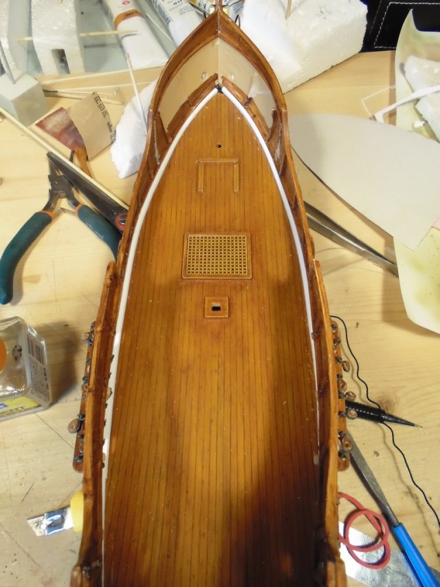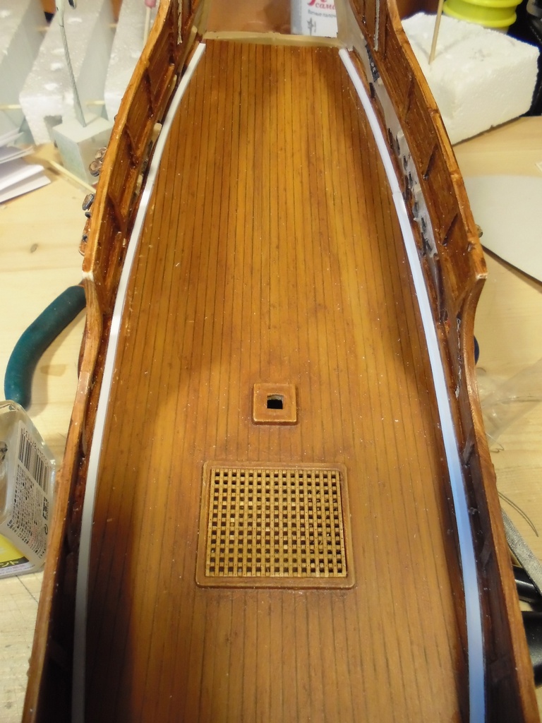 Вырезав полосу сечением 1,5х1,5 мм, вклеил её по периметру палубы.